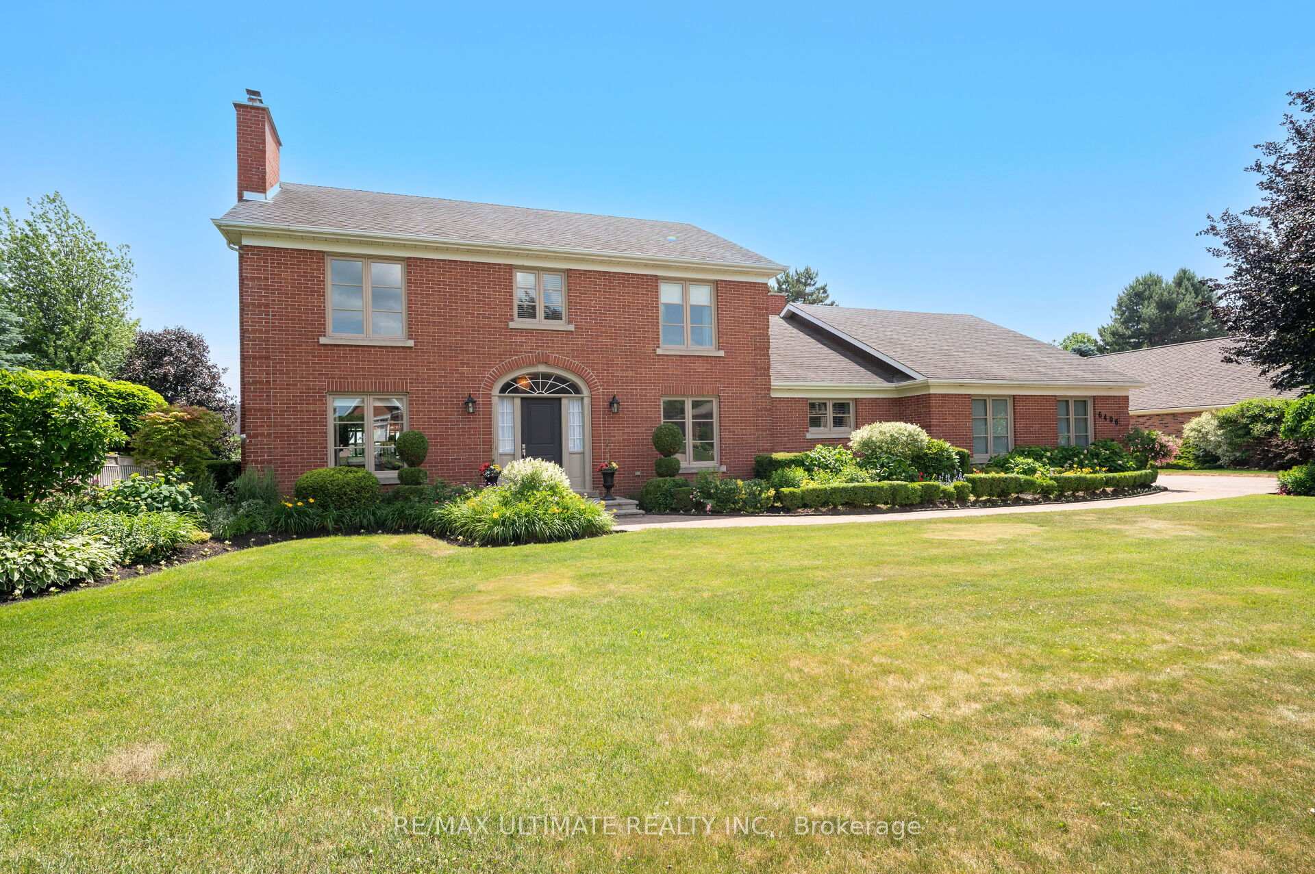 Welcome to 6496 January Drive - a luxurious estate home nestled on a massive lot in one of Niagara's most prestigious and picturesque Calaguiro Estates. Built by Frank Costantino of Costantino Construction Ltd.-a trusted name in Niagara homebuilding since 1976-this timeless 2-storey brick residence has been lovingly maintained by its original owners and showcases a rare combination of scale, craftsmanship, and pride of ownership.Perfectly perched along the Niagara Escarpment, this stately property offers both privacy and grandeur. The home's striking curb appeal is matched by nearly 4,300 sq ft of refined living space, designed for elegant entertaining and comfortable family living. Rich hardwood floors, fireplaces, crown mouldings, and custom finishes create a warm, sophisticated atmosphere throughout.Inside, you'll find multiple gathering areas, a modern kitchen, private office, solarium, and a separate entrance leading to a fully finished lower level with a second kitchen, living/dining room, family room, bedroom, and cantina-ideal for multi-generational living or long-term guests. With five spacious bedrooms, abundant storage, and seamless indoor-outdoor flow, the layout is both functional and flexible. Walls are all plaster, solid wood doors, windows replaced, newer roof, newer garage doors.Set on a beautifully landscaped, pool-sized lot surrounded by mature trees, this is more than just a home-it's an address. Located in a neighborhood known for its winding streets, breathtaking views, and custom homes, and just moments from a nearby golf course, 6496 January Drive offers a rare opportunity to own a piece of enduring Niagara luxury.