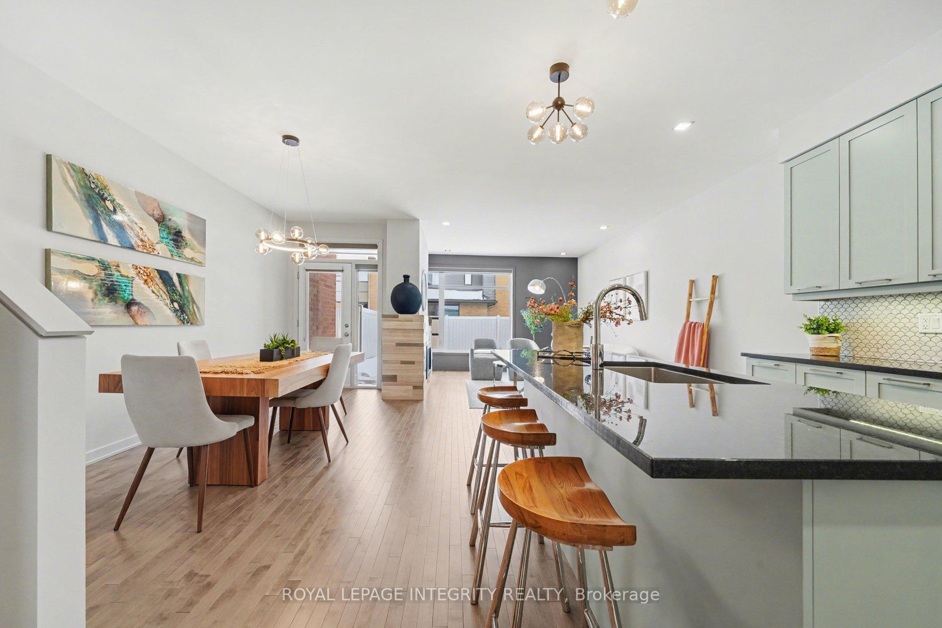 Welcome to this exceptional, luxury-appointed townhome built by award-winning HN Homes, in the prestigious heart of Riverside South, offering rarely found space, elegance, and refined finishes throughout.The bright, open-concept main level features 9-foot ceilings, rich hardwood flooring, and oversized windows that fill the home with natural light. The striking designer fireplace creates a warm and elegant focal point, perfect for both entertaining and everyday comfort.The stunning, magazine-inspired kitchen is designed with attention to detail, showcasing sleek cabinetry, premium stainless steel appliances, quartz countertops, and an impressive island with seating, ideal for hosting and gathering.A full wooden staircase brings you to the second floor. Upstairs, the spacious primary bedroom offers a walk-in closet and a stylish ensuite bathroom. Two additional generously sized bedrooms, a full bathroom, and a versatile loft space perfect for a home office complete this level.The finished lower level adds valuable living space with a large recreation room, ideal for a home theatre, gym, or family lounge.Step outside to the fully fenced backyard with a spacious deck, perfect for relaxing or entertaining. This home, with numerous UPGRADES, ensures an exceptional living experience. Ideally located steps to parks, scenic trails, and top-rated schools, this impeccably upgraded residence offers a rare blend of luxury, space, and lifestyle.