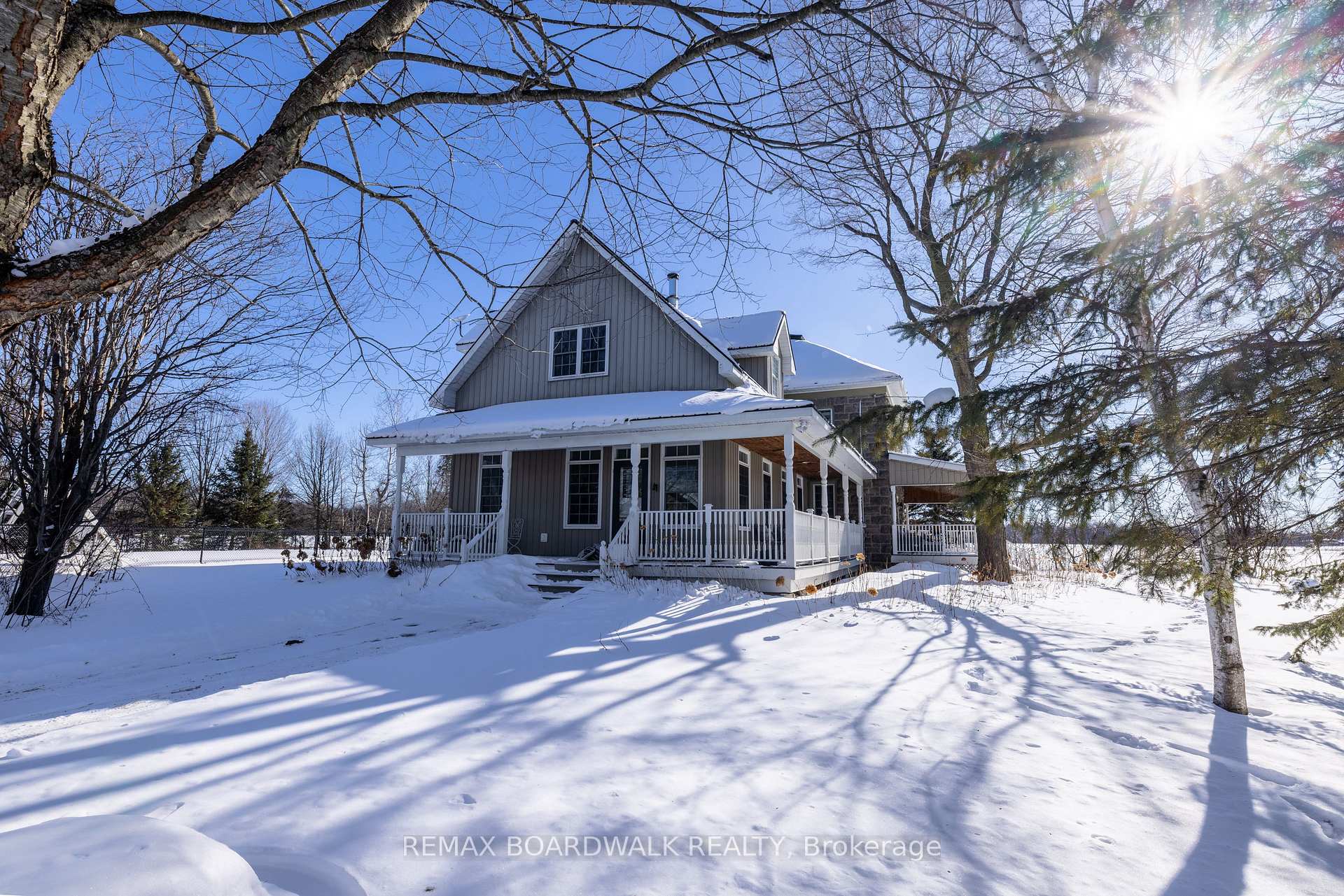 The Connell Residence - A Timeless Country Estate on 3.5 Acres. Set along a picturesque tree-lined drive just minutes from Spencerville and under 35 minutes to Ottawa via Hwy 416, this stunning 5-bedroom + office/den, 3-bath stone home blends heritage character with modern comfort. Wraparound verandahs overlook perennial hydrangea gardens and rolling farmland, creating a truly storybook setting. Inside, refinished original hardwood floors (2025) and large windows fill the home with warmth and natural light. The family room features an exposed stone wall and WETT-certified woodstove (2024) with direct backyard access, while the formal dining room is anchored by a beautiful stone propane fireplace. The spacious kitchen showcases brick accents, a copper sink, and a generous island, flowing seamlessly to the covered verandah for effortless indoor-outdoor living. Upstairs, the primary suite offers a sitting area, a large closet, and a private 3-piece ensuite. Three additional bedrooms plus an office/den share an updated 4-piece bath with a clawfoot soaker tub and walk-in shower. The finished lower level includes a recreation room, a fifth bedroom, and ample storage. Outdoors, enjoy resort-style living with lush lawns, meandering pathways, an inground pool with interlock patio and pool house, a two-level heritage barn, and a detached 2-car garage. A rare opportunity to own a landmark estate offering history, lifestyle, and flexibility - ideal as a forever home, luxury retreat, or event property.