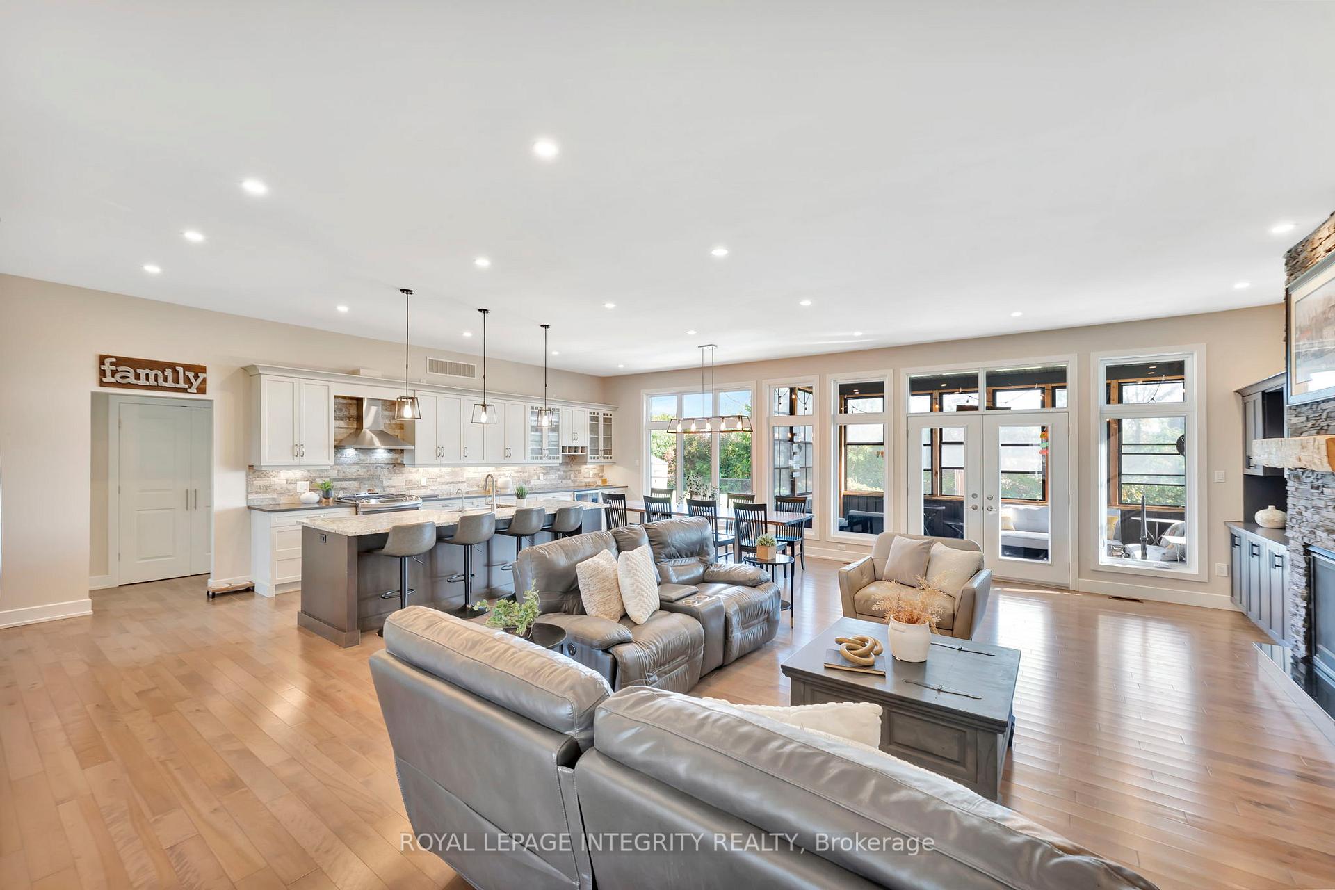 Luxury Bungalow Living in Maple Forest Estates! Set on nearly an acre in the prestigious Maple Forest Estates, this custom-built 2017 bungalow blends timeless design with modern luxury. Offering approximately 2,500 sq. ft. above grade plus a fully finished lower level, this home features 5 bedrooms (3+2) and 3.5 bathrooms, designed for both family living and effortless entertaining. The bright great room with a cozy gas fireplace opens seamlessly to the dining area and a chef's kitchen equipped with high-end appliances, stone countertops, and generous cabinetry. A private den, laundry/mudroom, and a luxurious primary suite with spa-inspired ensuite complete the main level, alongside two additional bedrooms connected by a Jack-and-Jill bathroom. The finished lower level offers exceptional flexibility, with a spacious recreation room, fitness area, two bedrooms, and a full bath-perfect for guests, teens, or multi-generational living. Radiant heated floors ensure year-round comfort. Outdoors, enjoy your own resort-style oasis featuring a heated inground pool with clear blue ionizer system, a tiki bar, and a beautifully landscaped private yard. An oversized 3-car garage, parking for 10+, whole-home generator, and water treatment system provide both comfort and peace of mind. Designed with efficiency in mind, the home offers modern heat pump systems for heating and cooling, ideal for today's energy-conscious buyer. Located just minutes from Manotick and North Gower, with quick access to Highway 416, this property perfectly balances country serenity with city convenience.