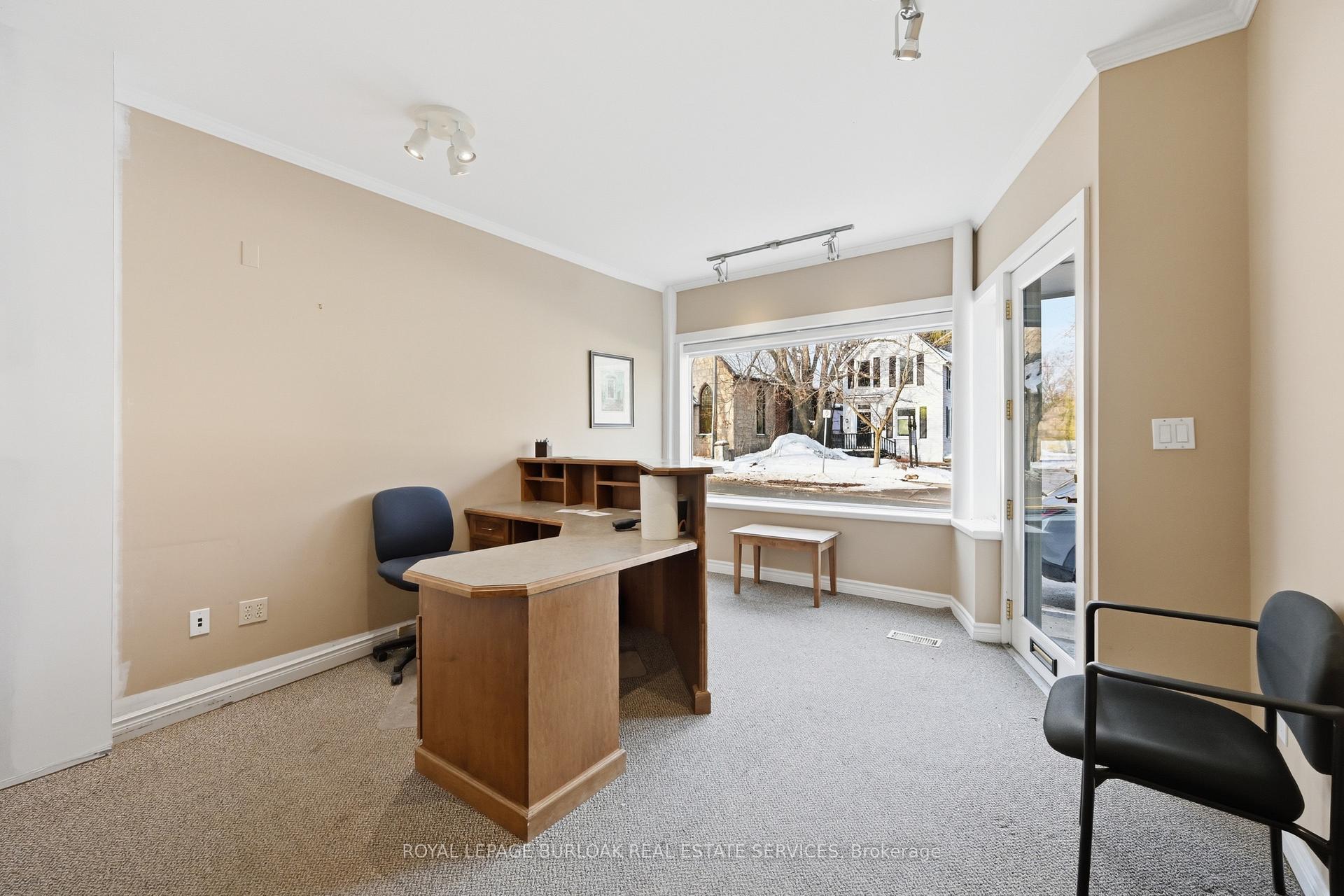 Professional office / retail space offering approximately 446 SF in a high-visibility Ancaster location. Located along Wilson Street East with strong vehicle exposure, steady pedestrian traffic, and convenient access to surrounding retail, restaurants, and neighbourhood amenities. Landlord can renovate the unit to suit tenant requirements or combine adjoining units to create a larger layout. Basement storage space available. High-speed internet available. One designated parking space included per unit, with additional street parking nearby.