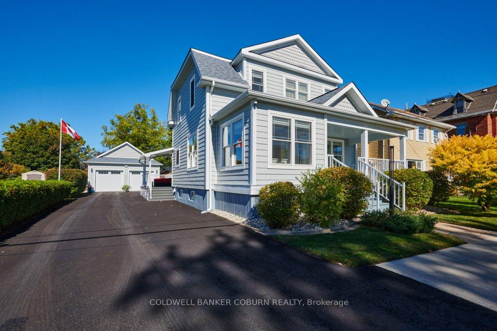 54 Lakeshore Drive - This beautifully restored Edwardian home, built in 1910, has been thoughtfully updated with exceptional attention to detail while preserving its period charm. The main floor offers a modern kitchen, a dining room/sunroom with access to a spacious covered Trex porch, a three-piece bath, a west-facing den, a second sunroom with river views, and a bright living room. Both the dining/sunroom and living room feature gas fireplaces, creating warm and inviting gathering spaces. The upper level includes three bedrooms, an open gallery, and a four-piece bath. The renovated basement is warm, dry, and highly functional-ideal for exercise, hobbies, or additional storage. Exterior of home features Hardie siding, updated windows & doors as well as roof shingles. Outdoors, a newly constructed, period-appropriate two-car garage includes a storage loft. The expansive driveway accommodates up to eight vehicles and is finished with paving-stone edging. The lower deck features a retractable awning, natural-gas BBQ hookup, hot tub, and a 240-volt outlet. A garden shed provides extra storage, while a Wi-Fi-controlled irrigation system keeps the lawn lush throughout the summer. Smart-home features include a Nest thermostat, Dekco security cameras, discreet exterior lighting, and extensive Bluetooth/Wi-Fi control of lighting, HVAC, and irrigation. Located in the historic village of Morrisburg-one of the St. Lawrence River's early Loyalist settlements-this home enjoys a setting known for its rich heritage, riverside beauty, and welcoming community. The river, shopping, banks, restaurants, parks, beach, boat launch and dock, medical and dental clinics, golf, curling club, arena, library, and the Upper Canada Playhouse are all within a short walk or bike ride. Explore the virtual tour, photos, drone imagery, and floor plans to fully appreciate this exceptional property.