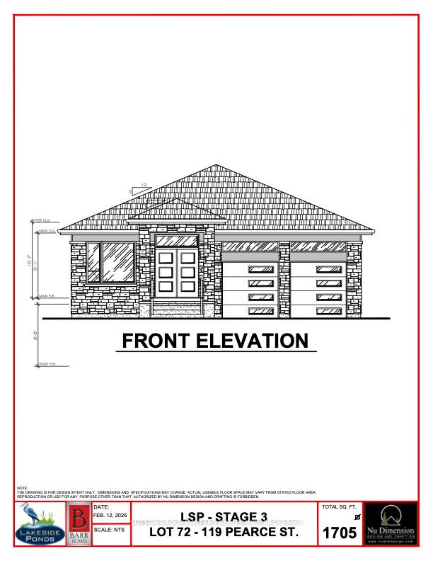 Welcome to 119 Pearce Street in Lakeside Ponds. This brand new Bungalow model built by Barr Homes is sure to please with over 1,700 square feet of finished living space on a spacious 52 foot corner lot with 3 bedrooms and 2 bathrooms. Throughout the home you'll find engineered hardwood throughout, ceramic tile in all wet rooms, quartz kitchen countertops along with soft-close drawers and doors, 9' ceilings, ethernet outlets in every bedroom and on the TV wall, A/C, sodded lots, paved driveways, and the list goes on! 119 Pearce Street is close to schools, parks, walking paths, waterfront, shopping, restaurants and a few short minutes to Kingston's West End or the 401. Find the true meaning of modern and comfort with this beautiful new model and take advantage of the selections process where you can customize and create your ideal and perfect home with our design team. This is an opportunity you won't want to miss so be sure to reach out today to make your dream home a reality!