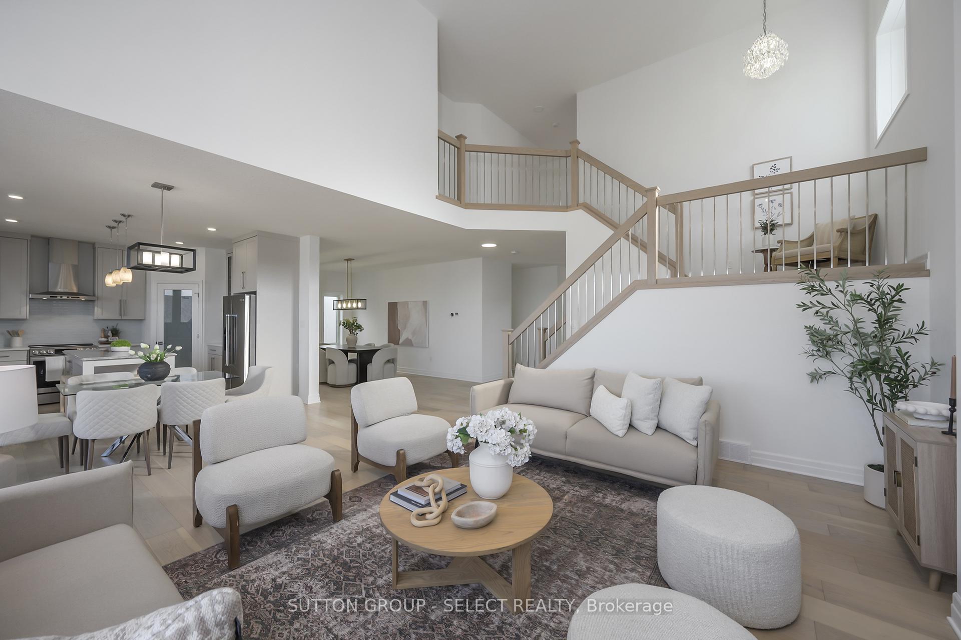 Architectural presence defines this customized Sifton-built residence in Riverbend's Upper West. Offering 2,697 sq ft above grade with a true walk-out lower level, the home delivers scale, proportion, and a level of completion that positions it confidently against new construction options. A raised elevation, stone façade, and covered front porch create balanced, welcoming curb appeal.Inside, a soaring vaulted ceiling commands the great room, anchored by a sleek linear fireplace and framed by a sculptural switchback staircase with an oversized mid-level landing and contemporary railing detail. Impressive windows draw natural light across the primary living areas. The landing introduces architectural drama rarely seen in this category. A soft, organic palette and white oak flooring throughout the main and second levels create warmth and cohesion.The kitchen was customized to enhance storage and flow. Quartz perimeter surfaces frame the space, while a contrasting granite island anchors it with depth and presence. Full-height cabinetry includes a glass-front display section, complemented by stainless steel appliances, pendant lighting, and a walk-in pantry. Expanded cabinetry improves everyday functionality while maintaining clean, modern lines.A private main floor office, separate dining room, and dedicated main floor laundry room enhance function & convenience.Upstairs, four generous bedrooms are supported by three full bathrooms - an increasingly essential configuration in executive homes of this scale. The primary suite offers lounge space, a walk-in closet, and a refined ensuite with soaker tub and glass shower.The comfort of the expansive covered deck extends the main level outdoors, creating meaningful three-season living space. Stairs lead to the fully fenced backyard below. The bright walk-out lower level provides 1,398 sq ft of future flexibility.Finished. Composed. Architecturally distinctive - turn-key living from day 1.