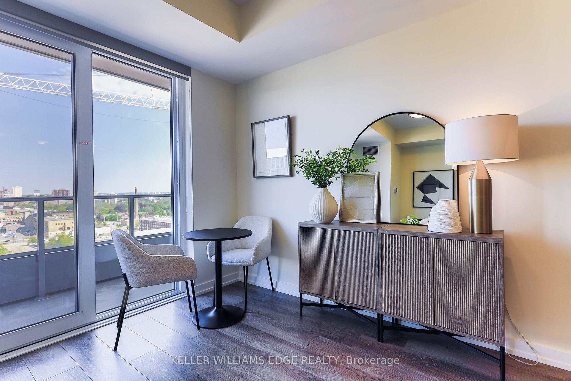Station Park is in the heart of Kitchener's Innovation District. This beautiful and modern 1-bedroom condo offers unobstructed views, sleek finishes, and the added convenience of an exclusive locker. The open-concept layout features stainless steel appliances, contemporary cabinetry, elegant countertops, and stylish flooring throughout. Large windows provide abundant natural light, creating a bright and inviting living space that feels both functional and refined. Station Park is known for its exceptional, resort-style amenities including a private bowling alley with indoor and outdoor lounge, hydro pool swim spa and hot tub, fully equipped fitness centre, yoga/Pilates and Peloton studio, dog washing station/pet spa, smart parcel locker system, party room, and a rooftop terrace with BBQ area. Unbeatable central location just steps to theTannery District, restaurants, cafés, shopping, and entertainment. Walk to the hospital, schools, and University of Waterloo School of Pharmacy.Minutes to the ION LRT, Google, GO Train, and the future Transit Hub.