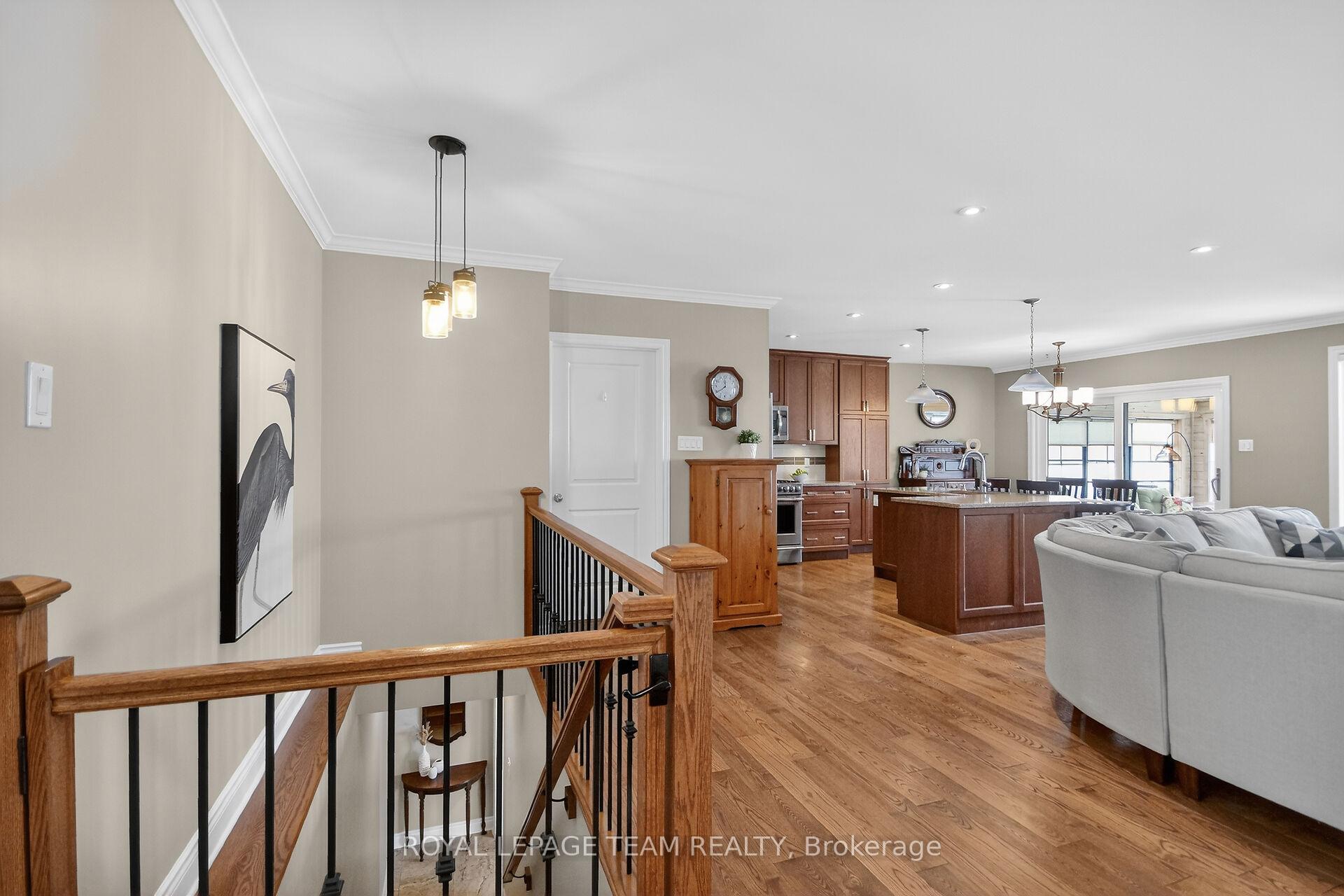 Prepare to fall in love with this award-winning Talos quality-built bungalow, impeccably upgraded, and offering no rear neighbours for added privacy. This exceptional 2-bedroom + Den, 3-bath bungalow delivers refined finishes, functional design, and extended living spaces-perfectly suited for those seeking turnkey luxury. The open-concept main level features wide-plank engineered hardwood throughout, crown moulding, pot lights, premium railings, and a hardwood staircase. The Laurysen kitchen showcases quartz counters, tile backsplash, cabinetry finished to the ceiling with crown detail, gas stove, island w/breakfast bar, wall pantry cabinets, and updated stainless steel appliances. The spacious Great Room is anchored by a floor-to-ceiling stone fireplace, creating a striking focal point for everyday living. The primary suite offers a walk-in closet customized by Laurysen & a spa-inspired 3-pce ensuite w/glass shower. The 2nd bedroom also includes custom built-ins. A generous mudroom with built-in shelving, overhead cabinetry, and main-floor laundry provides inside access to the fully insulated oversized garage with a new insulated garage door. The professionally finished lower level features a desirable lookout basement w/daylight windows, custom millwork, a large open-concept family room & games area w/pool table, and a gas fireplace w/brick façade, reclaimed wood accents, + beam mantle. A luxurious lower-level bath includes an oversized deep tub, double sinks, and elegant finishes, plus a separate guest room/den for visitors or workspace. Ample storage space in basement. Outside, enjoy a fully fenced yard with rear interlock patio, front interlock and raised gardens, and a custom 3-season sunroom accessed from the dining room through an oversized patio door, with ample storage below. This meticulously maintained home truly has it all - quality craftsmanship, designer upgrades, and exceptional indoor and outdoor living spaces. A rare opportunity not to be missed.