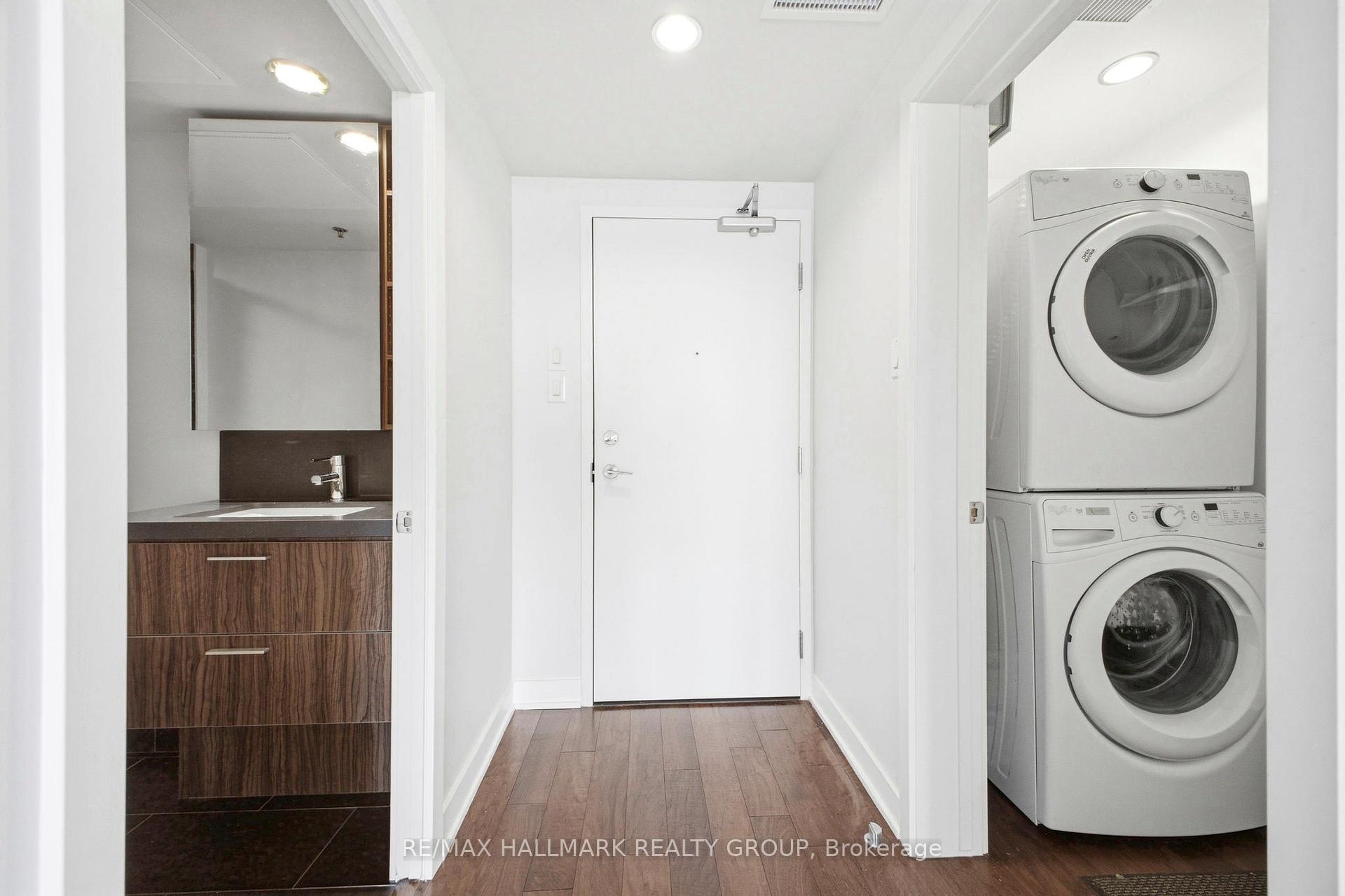 Experience urban living at its finest in the heart of vibrant Centretown. Welcome to The Hideaway at 340 McLeod Street, a sophisticated 1-bedroom plus den residence that perfectly balances modern luxury with a stylish industrial edge. Spanning 615 square feet of thoughtfully designed living space, this condo feels remarkably open and airy thanks to nine-foot ceilings, floor-to-ceiling windows, and exposed concrete and piping that lend a chic, loft-like character to the home. The interior features gleaming hardwood floors throughout, a stylish and functional kitchen, boasting quartz countertops and stainless steel appliances. The primary bedroom serves as a flexible retreat with movable privacy doors, while the generously sized den offers the perfect footprint for a home office, guest space, or quiet library. Beyond the living area, step out onto your private balcony to enjoy your morning coffee or unwind in the evening. While this unit is centered on a walkable lifestyle, it includes a dedicated storage locker for your convenience. Residents of The Hideaway enjoy a resort-style amenity package that is second to none in the city. You will have access to an outdoor heated saltwater pool with a dedicated lounging area, a ground-floor terrace with a cozy fireplace, a fully equipped fitness center, a theater room, and a stylish party room complete with a bar and pool table. Situated just steps from the shops and restaurants of Elgin Street and Lansdowne, and with easy access to Highway 417 and Parliament Hill, this property offers an unparalleled downtown experience.