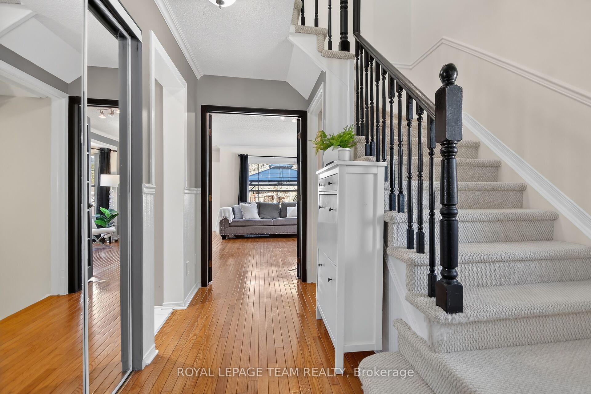 Perfectly positioned on a generous 4,962 sq. ft. irregular corner lot 61.31 ft x 111.64 ft, this beautifully maintained two-storey townhome offers an exceptional blend of space, comfort, and privacy. With no rear neighbours, backing directly onto a municipal park, the setting is both peaceful and picturesque. An ideal retreat in a sought-after, family-friendly community. Step inside to a warm and inviting main level, hardwood flooring flows through the principal living areas, complemented by durable porcelain tile in the kitchen. Thoughtfully updated kitchen which is both stylish and functional. Featuring abundant cabinetry, granite countertops, stainless steel appliances, and a tasteful backsplash that tying the space together. Dining area filled with natural light and offers patio door access to the backyard deck, extending your living space outdoors. gazebo creates the perfect setting for summer dinners, morning coffee, or simply relaxing. Second level with spacious hallway leads to three well-proportioned bedrooms. The primary suite offers a comfortable and private retreat, complete with a walk-in closet and a four-piece ensuite. Two additional bedrooms provide ample space for family, guests steps away from four-piece main bath. Fully finished lower level adds valuable living space to the home. A welcoming family room highlighted by a striking stone feature wall with electric fireplace an ideal space for cozy evenings or casual gatherings. A versatile den with a storage closet offers flexibility for a home office or workout area. Completing this level is a convenient three-piece bathroom and a dedicated laundry/utility area. Close to schools, parks, shopping, & everyday amenities, this home combines thoughtful updates, generous living space, & an unbeatable setting. AC (17), Furnace (14), Gas fireplace (14, pilot light 25), Kitchen (20/21), Patio door (25), Fridge (26), stove 25, microwave 26, washer/dryer 22, Windows (20/21)