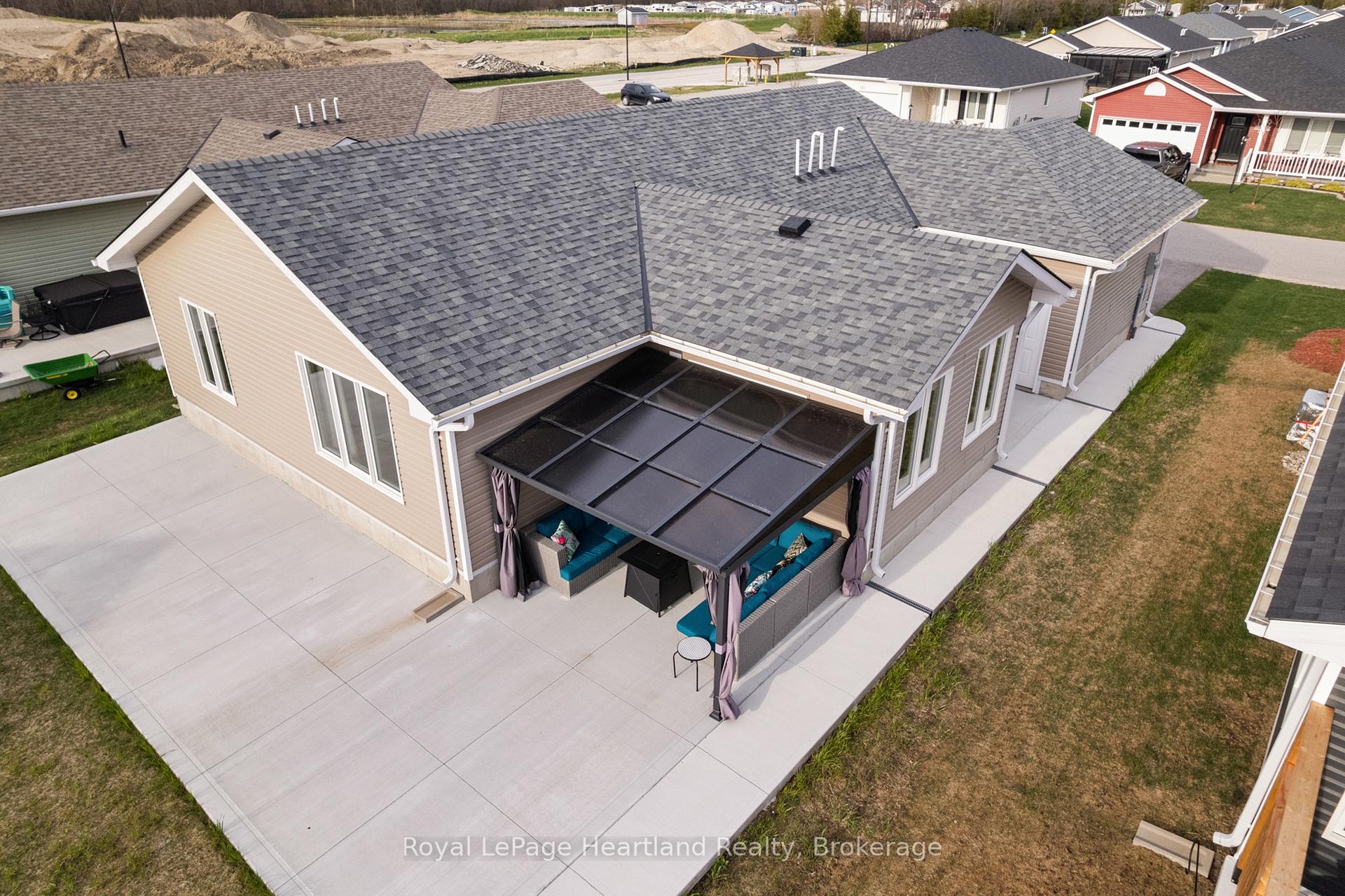 At Lake Huron's 55+ Parkbridge Community, Bluffs at Huron, could this be the "Lakeside with Sunroom" model that provides the value you're looking for? Wonderfully maintained and offering approximately 1,455 sq ft of thoughtfully designed living space, highlighted by warm plank flooring throughout the main areas, warm-toned cabinetry, and crown moulding. The kitchen is beautifully appointed with Cambria quartz countertops, a custom pantry with roll-outs, generous prep-space island with upgraded storage and overhang, natural gas stove, and refrigerator with water feature, combining style and practicality. Adjoining the kitchen, the sunroom wrapped in windows provides abundant natural light and versatile space, while the living room features a gas fireplace showcased with contemporary white millwork as a striking focal point. The primary suite includes a large walk-in closet and 3-piece ensuite with decorative tiled floors, while a second bedroom and 4-piece main bathroom are at the front of the house. Additional thoughtful features include a dedicated laundry room with an upgraded laundry sink, and custom roller blinds. The home is move-in ready with no painting needed. Curb appeal begins with a new epoxy resin finish on the welcoming front porch, positioned on a manageable lot with big entertaining impact, the property features a West-facing oversized concrete patio with a wraparound path to the front driveway. Modern finishes and near to outdoor recreational spaces, including a leisurely stroll to the community's well-attended Clubhouse makes this an exceptional opportunity in The Bluffs at Huron. Appliances included. Schedule your private showing today, or stay tuned for details on the April Open House date and time.