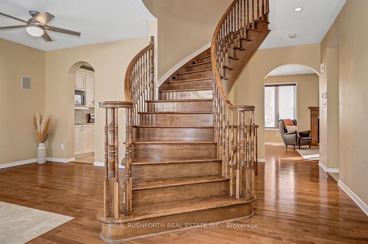 Welcome home to this beautiful 4-bedroom home, thoughtfully designed with a smart and functional layout, and perfectly positioned on a large corner lot. From the moment you enter, you're greeted by an elegant curved hardwood staircase and an abundance of natural light. The open-concept living and dining areas are ideal for everyday living and entertaining alike. gourmet kitchen features granite countertops, a spacious eating area, and patio doors leading to a fully fenced yard-perfect for relaxing or hosting outdoors equipped with gorgeous gazebo and hot tub. A cozy main-level family room with a gas fireplace adds warmth and charm. Upstairs, you'll find four generously sized bedrooms, including a serene primary retreat with a walk-in closet and a spa-like ensuite complete with a Roman tub and separate shower. The second bedroom also offers a walk-in closet, and convenient second-level laundry makes daily routines effortless. The unspoiled lower level, already equipped with a gas fireplace, offers endless potential. Additional highlights include a double car garage, in-wall and in-ceiling Totem speakers, a maintenance-free fence, stamped concrete patio, gazebo, and shed. Located near greenspace, bike paths, parks, and excellent schools, this home delivers advantages at every turn. See it today-you won't want to miss it! Some photos have been virtually staged. Roof (2022), AC (2020)