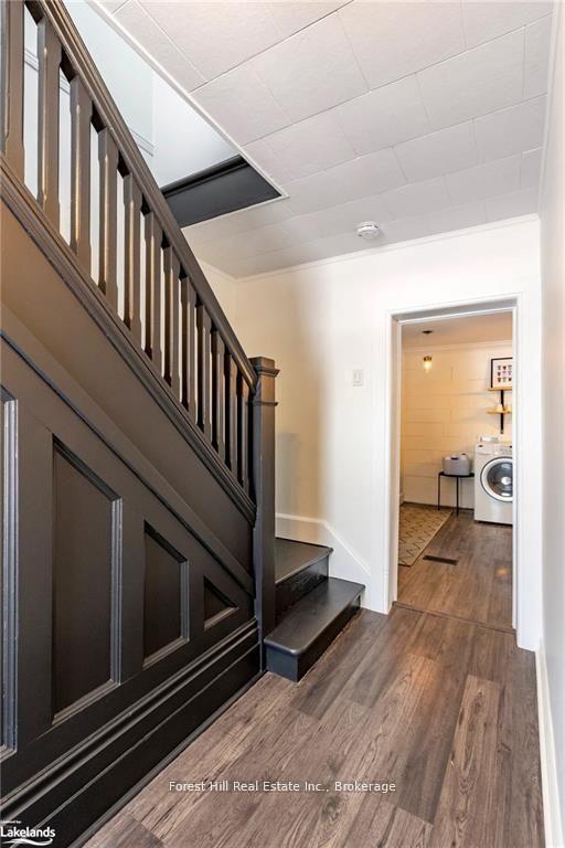 Charming and beautifully updated 2-bedroom home located on one of Meaford's most desirable residential streets. Offering just over 1,000 square feet of thoughtfully designed living space, this bright and welcoming home blends comfort with functionality. The main floor features an open-concept kitchen, dining, and living area filled with natural light from large front-facing windows overlooking the garden. The kitchen is fully equipped with fridge/freezer, stove, oven, microwave, and dishwasher, with the added convenience of a washer and dryer located within the space. A built-in banquet dining area comfortably seats four, creating a cozy setting for everyday meals. The living room offers two comfortable couches and a relaxed atmosphere ideal for unwinding or entertaining.Upstairs, the front bedroom includes a queen-sized bed and a dedicated workspace, making it ideal for guests or working from home. The second bedroom at the rear of the home is unfurnished and can easily accommodate a variety of needs. The spacious bathroom features a double vanity, tub/shower combination, and additional storage for linens and towels. Outside, enjoy the charm of the large front garden and relax on the inviting porch swing. Parking for two vehicles (tandem) is located on the far left side of the driveway. A wonderful opportunity to lease a bright, comfortable home in a quiet and established Meaford neighbourhood, ideally suited for a small family or professional couple.
