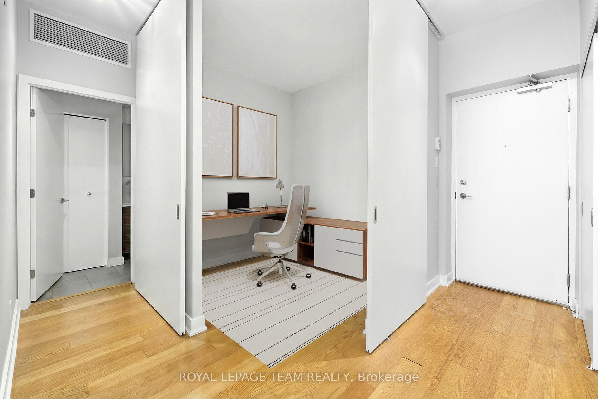 Experience Centretown living at it's best at Central 1. This open concept 1 bed+den ft bright wide engineered hardwood floors, floor to ceiling windows and large balcony spanning the length of the unit. Carefully placed den w/double doors is a fitting spot for work from home! The Kitchen is equipped w/Stainless appliances, crisp glass backsplash and quartz counters. This rare Barcelona model feature an open dining and living space that's great for entertaining. The large bedroom has double oversized closets with extra shelving for ample storage, access to the laundry and large bathroom via the cheater door! This LEED Gold Certified Building is walking distance to dining, shopping, and all the great amenities the city has to offer. Building amenities include a private courtyard w/gas bbq, fitness centre, party room, car wash station, security, and a concierge service. Locker is included, parking is available for an additional fee.