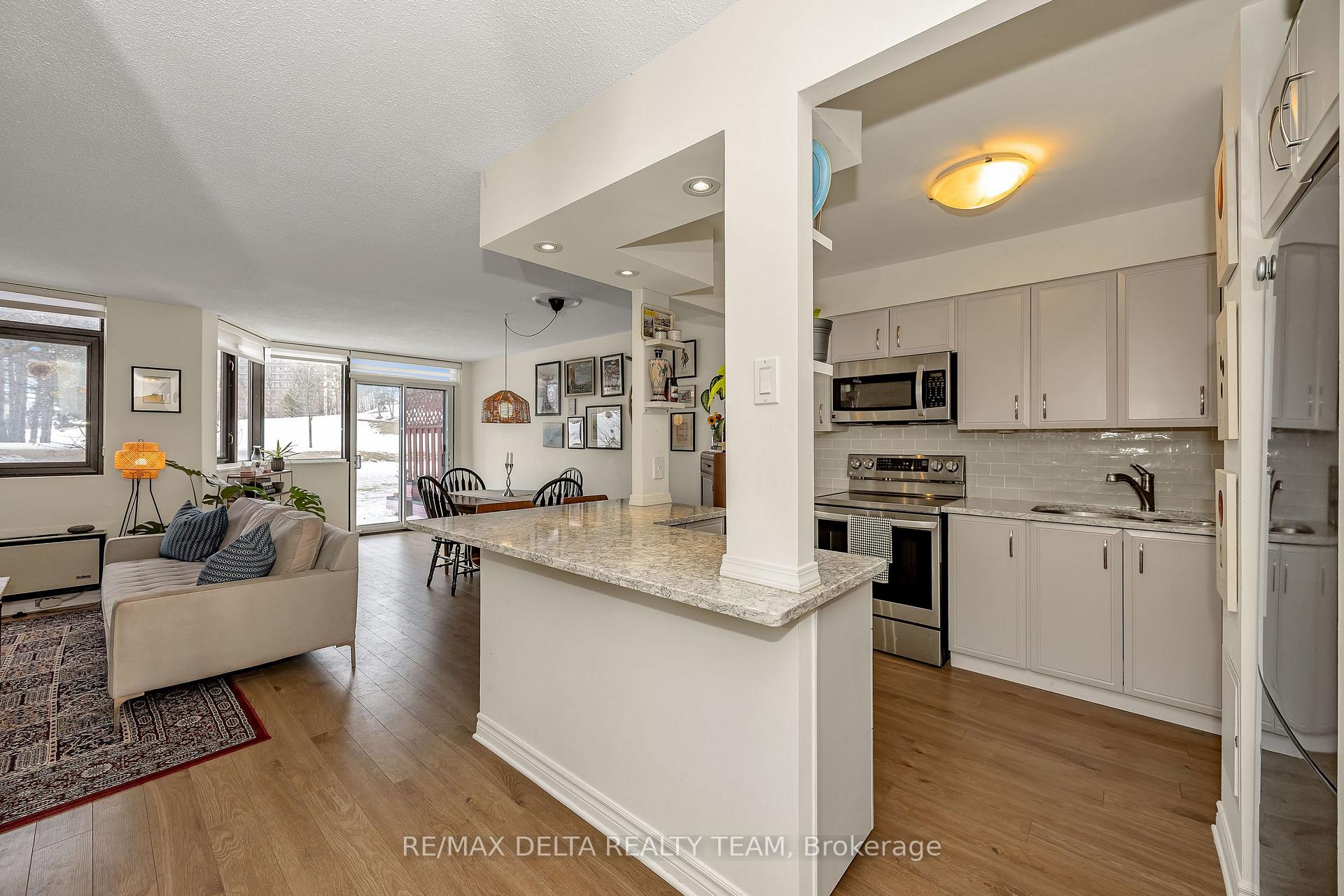 Discover the charm of this rarely offered 2-storey condo, where comfort meets convenience. With 2 bedrooms, 2 bathrooms, and your own private patio backing onto tranquil greenspace, this home offers a peaceful retreat in the heart of the city. The main floor welcomes you with an airy open-concept layout, perfect for relaxing or entertaining. The kitchen features beautiful granite counters and a spacious island that easily doubles as a workspace or breakfast spot. Upstairs, you'll find two bright bedrooms, a modern full bath, and in-unit laundry. The primary bedroom feels especially luxurious with its floor-to-ceiling windows, double closets, and private ensuite. Enjoy a true resort-style lifestyle with amenities like an outdoor pool, sauna, hot tub, racquetball court, fitness centre, library, party room, and more. With Bayshore Shopping Centre, Farm Boy, transit, and the Ottawa River just minutes away, Marina Bay offers the best of both comfort and convenience.