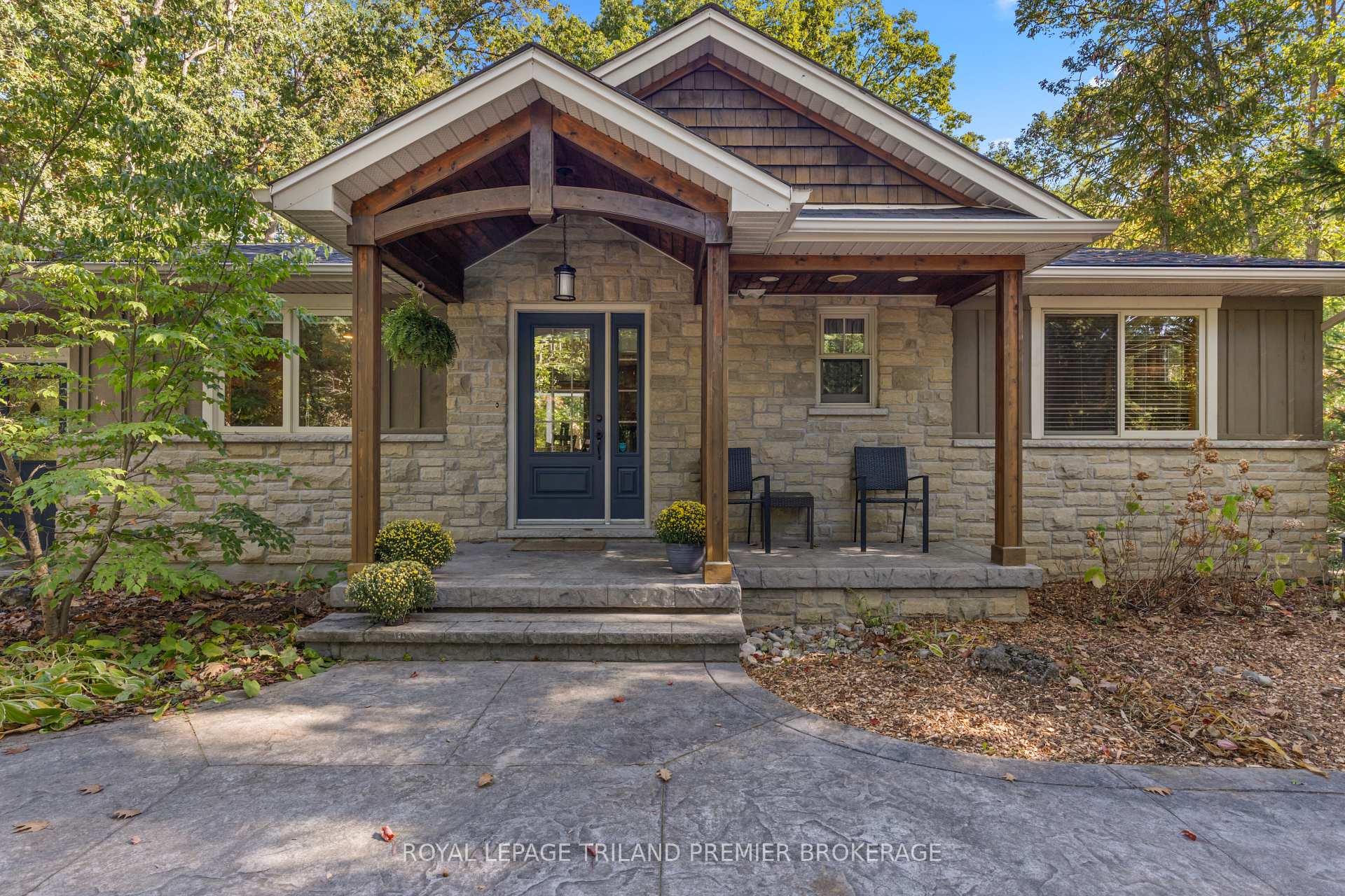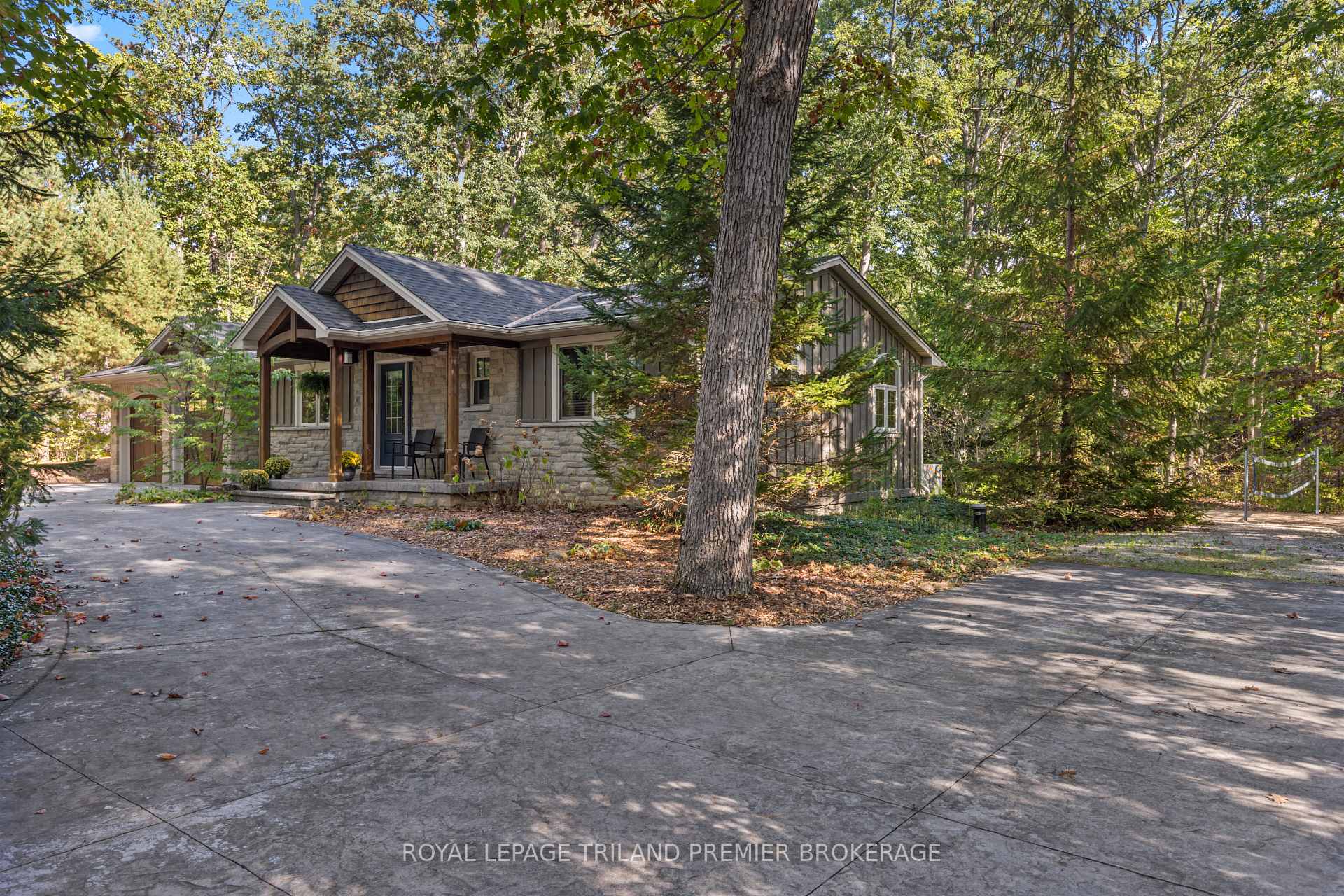 Welcome to this charming and beautifully updated home nestled among the trees in the exclusive gated community of Beach O' Pines. This private, wooded lot offers the perfect blend of tranquility and convenience, just steps to the sandy shores of Lake Huron. The inviting bungalow features 3 bedrooms and a bright, open family room complete with built-in shelving, a cozy gas fireplace, and large sliding doors leading to the rear deck overlooking the backyard and trees. The updated eat-in kitchen boasts granite countertops and plenty of natural light, perfect for entertaining. The updated main bathroom offers granite counters and a tiled glass-enclosed shower, while hardwood flooring flows throughout the main living area. The spacious garage/recreation room provides exceptional versatility with slate flooring, a wood-burning fireplace, large windows, backyard access and a 3-piece bathroom ideal for guests or entertaining. Outside, enjoy beautiful curb appeal with a wrap-around driveway, a convenient outdoor shower, and peaceful natural surroundings. A rare opportunity to own a move-in-ready home or cottage in one of Grand Bends most desirable communities where comfort, charm, and nature meet. Dont miss it!