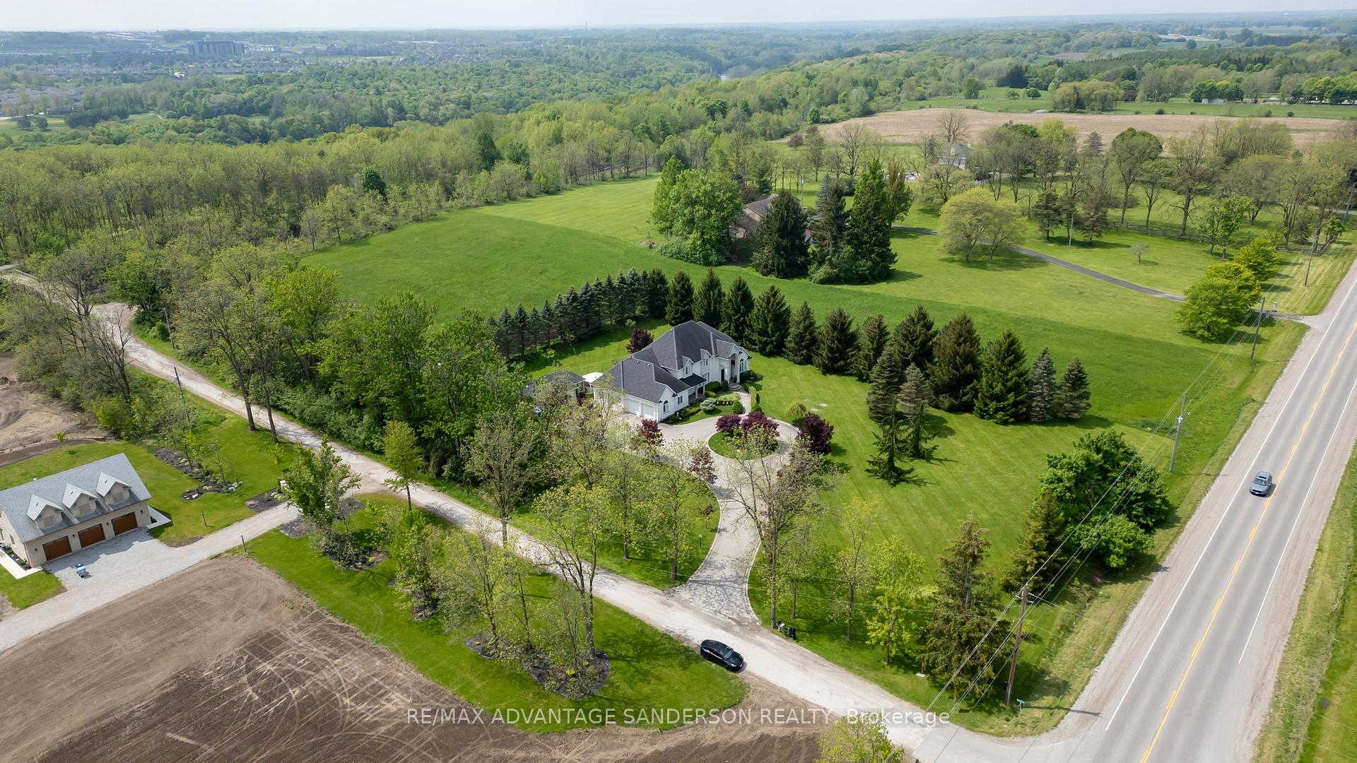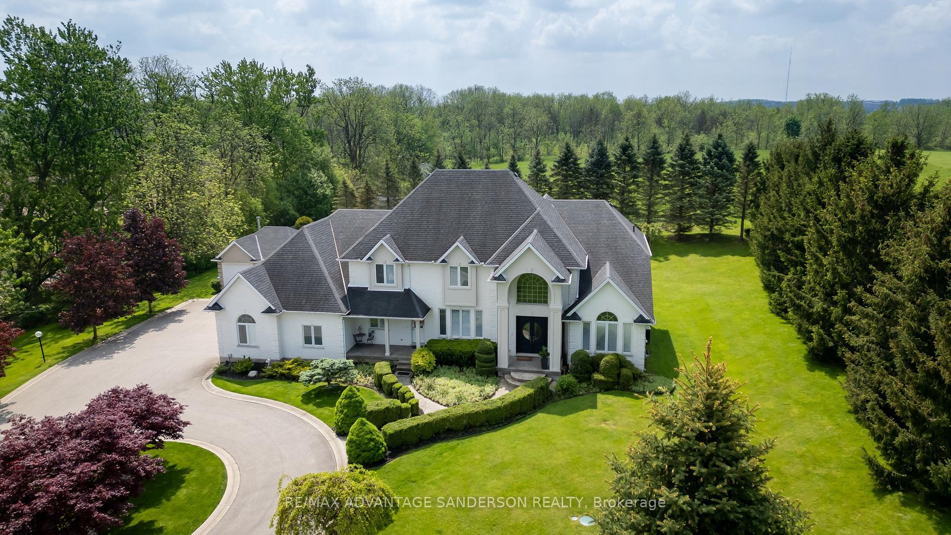 RARE offering - 5 ACRES just minutes from the city. Welcome to 20735 Denfield Road, an extraordinary custom-built estate offering over 6,000 sq. ft. of refined living space on a pristine 5-acre parcel only 2 km from Hyde Park. Here, the serenity of country living meets the convenience of the city, with flat land presenting exceptional privacy and maturity! A dramatic 25-foot entryway filled with natural light welcomes you, anchored by a striking 3-storey eye-shaped staircase that sets the tone for the home's architectural elegance. The main level unfolds into an impressive open-concept layout featuring a formal dining room, expansive family room with gas fireplace, and a spectacular chef's kitchen designed for both everyday living and grand entertaining. A vaulted-ceiling den, bedroom with 4-piece ensuite and walk-in closet, main-floor laundry, and access to a private patio complete this level. The gourmet kitchen showcases built-in appliances, custom cabinetry, and a quartz island with wet bar, all overlooking the private backyard. The adjoining sunroom opens to a patio and gazebo, creating the perfect setting for entertaining or quiet relaxation. Upstairs, four spacious bedrooms each feature their own private ensuite and walk-in closet, offering comfort and privacy for family and guests alike. The lower level includes a large recreation room with game tables, second kitchen, generous storage, and a 2-piece bathroom. The exterior is equally impressive, with refined landscaping, accent lighting, and mature trees providing both beauty and privacy. Additional features include a detached 2-car garage, a 400 sq. ft. utility shed with water access, and a unique 500 sq. ft. home office with dedicated electrical and HVAC system - originally a 2-car garage that could easily be converted back for car enthusiasts. A rare opportunity to own a truly exceptional estate in an idyllic setting. Explore the the 3D tour at: https://my.matterport.com/show/?m=ZExwa55rM5a
