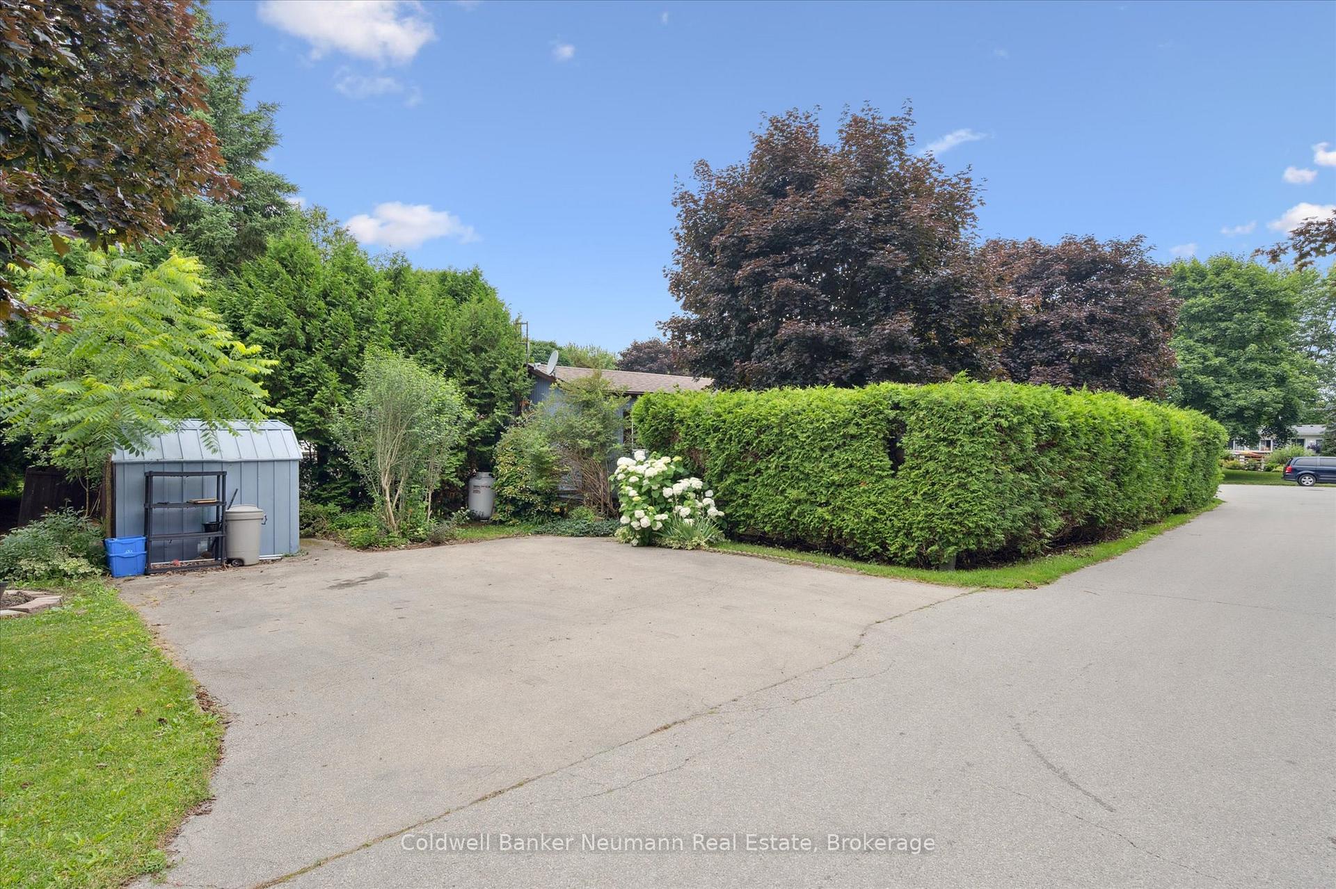 Privacy plus!! This well maintained 2 bedroom bungalow is surrounded by an 8 foot hedge, which allows ultimate privacy from others! The only thing to be seen from the road is the double paved driveway and shed. Inside you will find a generous size eat-in kitchen, living room with propane stove, updated 3 piece bathroom combined with laundry and a primary bedroom with wall to wall closet. The exterior vinyl siding was painted about 2 years ago, furnace and central air is about 7 years old, the windows and roof about 10 years ago. Located on a street with great neighbours! This modular home is located within Beverly Hills Estates, a residential modular home park, with a community centre and scheduled events for residents to join (or not!) All homes are owner occupied-no rentals! Come out and see this wonderful affordable home in a great community!