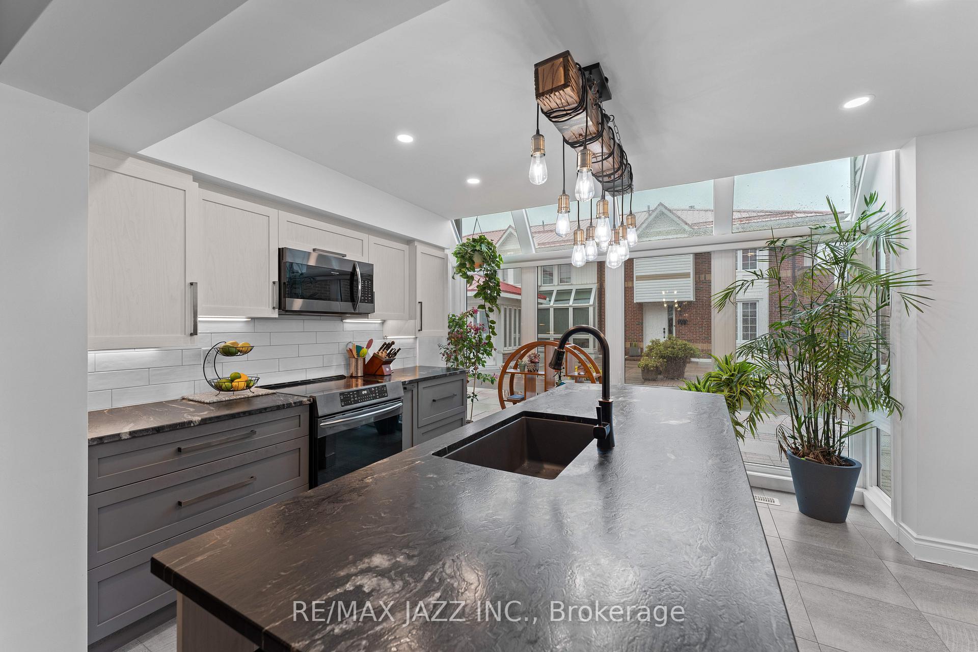 Exquisitely renovated 3-bedroom, 3-bathroom townhome in Kingston's prestigious Frontenac Village, perfectly positioned in the heart of historic downtown. Among the largest residences in this sought-after enclave, the home offers 2,982 sq. ft. of sophisticated living space. Masterfully updated from top to bottom with premium finishes and impeccable attention to detail. Thoughtfully designed with an elegant open-concept layout, the residence blends timeless design with modern comfort. At its heart is a spectacular chef-inspired eat-in kitchen, featuring extensive custom cabinetry, striking leathered granite countertops, premium stainless-steel appliances, and solarium-style windows that bathe the space in natural light, creating an inviting setting for both everyday living and elevated entertaining. The bright and welcoming family room is anchored by a charming wood-burning fireplace and opens seamlessly to a sun-drenched interlocked terrace, an ideal extension of the living space for relaxing or hosting guests. Privately situated, the primary bedroom/retreat offers a refined sanctuary and generous closet space designed for comfort and convenience. An exceptionally rare feature for downtown living, the home includes three underground parking spaces, further elevating the practicality and exclusivity of this remarkable property. Residents of Frontenac Village enjoy access to exceptional lifestyle amenities, including an outdoor pool and patio, fitness centre, sauna, library, party room, secure underground parking, and beautifully landscaped grounds. Perfectly situated, this distinguished residence is just steps from Kingston's finest restaurants, boutique shopping, vibrant entertainment, the Kingston Marina, Queen's University, highways & more, offering a truly unparalleled downtown lifestyle defined by elegance, convenience, and timeless appeal.