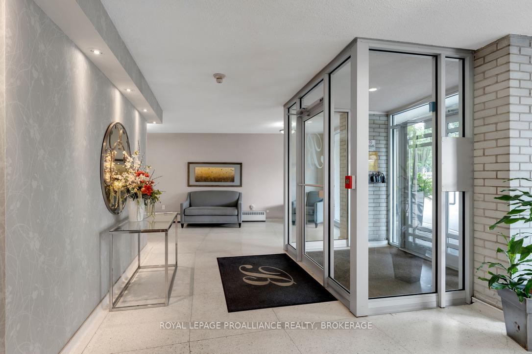 Welcome to The Bayshore, nestled in one of Kingston's most coveted settings-historic Portsmouth Village. This unique and thoughtfully appointed Penthouse suite offers a timeless elegance with three generously sized bedrooms, a perfectly proportioned living room, a classic dining space perfect for entertaining, and a light-filled kitchen designed for both beauty and function. From nearly every room, take in the breathtaking southern exposure views of Lake Ontario and the iconic Portsmouth Olympic Harbour-inviting a sense of peace and connection to nature. The building itself is rich in lifestyle offerings, including a waterside pool and a charming ground-floor common room ideal for gatherings with neighbours or relaxing with a good book. Step outside to enjoy Lake Ontario Park or take in the scenic 8km walking trail along Kingston's stunning waterfront. The Bayshore is where elevated design meets a tranquil lakeside lifestyle- truly a place to feel at home. Monthly condominium fees include parking, heating, water/sewer, building insurance, and maintenance-allowing for a simplified and carefree lifestyle. As an added bonus, there is a separate building offering a common storage facility for bicycles, kayaks, canoes and more.