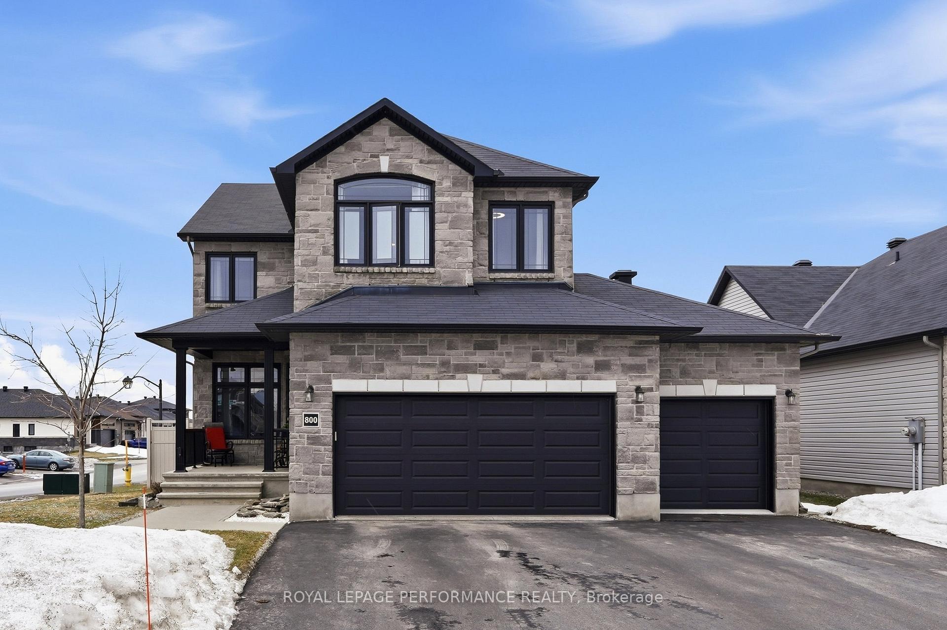 *** OPEN HOUSE MARCH 21, 2-4 PM *** Welcome to 800 Platinum Street in the sought-after Morris Village community of Rockland, a stunning modern 3 bedrooms, 2.5 baths home, HEATED 3-CAR Garage and Large driveway with space for 6 cars. This impressive "Cartier" model sits on a large corner lot and offers exceptional space, elegance, and functionality for today's lifestyle. Step inside and enjoy 9-FOOT ceilings throughout the home, enhancing the sense of space and comfort, while the grand 20-FOOT Cathedral Ceiling in the living room creates a bright, airy atmosphere filled with natural light. Step inside and be captivated by the grand 20-FOOT Cathedral Ceiling in the living room, creating a bright, airy atmosphere filled with natural light. Open-concept main floor is perfect for everyday living and entertaining, featuring a spacious living room, dining area, and a stylish kitchen with quartz countertops, a massive 7.5-foot island, and abundant cabinet space. The main level also includes a convenient den/office and powder room. Upstairs offers three generously sized bedrooms, including a truly presidential-style primary suite that feels like a private retreat. This exceptionally large Master bedroom with Cathedral Ceiling features a walk-in closet, den/lounge area, and a luxurious 4-piece ensuite with quartz countertops, heated floors, and a relaxing soaker tub. The second level also 2 good sized bedrooms, and a 3-piece bathroom and a laundry room for convenience. Car enthusiasts will appreciate the rare HEATED 3-CAR garage with plenty of room for vehicles, storage, or a workshop. Enjoy your private backyard oasis, fully fenced with 7-ft PVC fencing (2019) and complete with a gazebo (2021), outdoor shed (2020), and natural gas BBQ hookup-perfect for summer entertaining. Located close to parks, schools, and local amenities, this home offers the perfect blend of modern comfort, space, and lifestyle in Morris Village. Don't miss this rare opportunity!