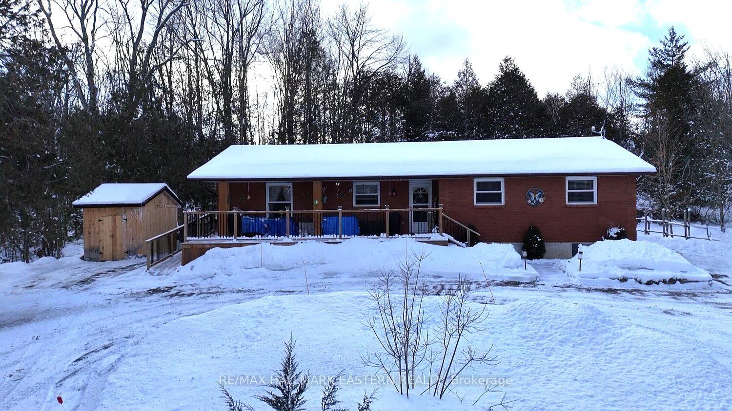 |Havelock| Just a few minutes North of town is this gorgeous 3+1 bedroom, 1.5 bath bungalow on an acre featuring plenty of living space, private yard with stream, beautiful decking, and fronts onto a well maintained County Road! The main floor has three bedrooms, one bath, huge eat-in kitchen, dining room, living room, and heated sunroom that overlooks the back yard. The basement has a rec-room, 2pc bath (with some plumbing for a shower), bedroom, kitchenette, laundry, office, and two storage rooms. Outside has a circular driveway, large front deck, private back yard and small stream running down the South side of the property with its own walking bridge! Basement Rec-Room has propane fireplace. Propane Furnace and AC installed around 2020. Shingles installed in 2016. Exterior generator hookup.