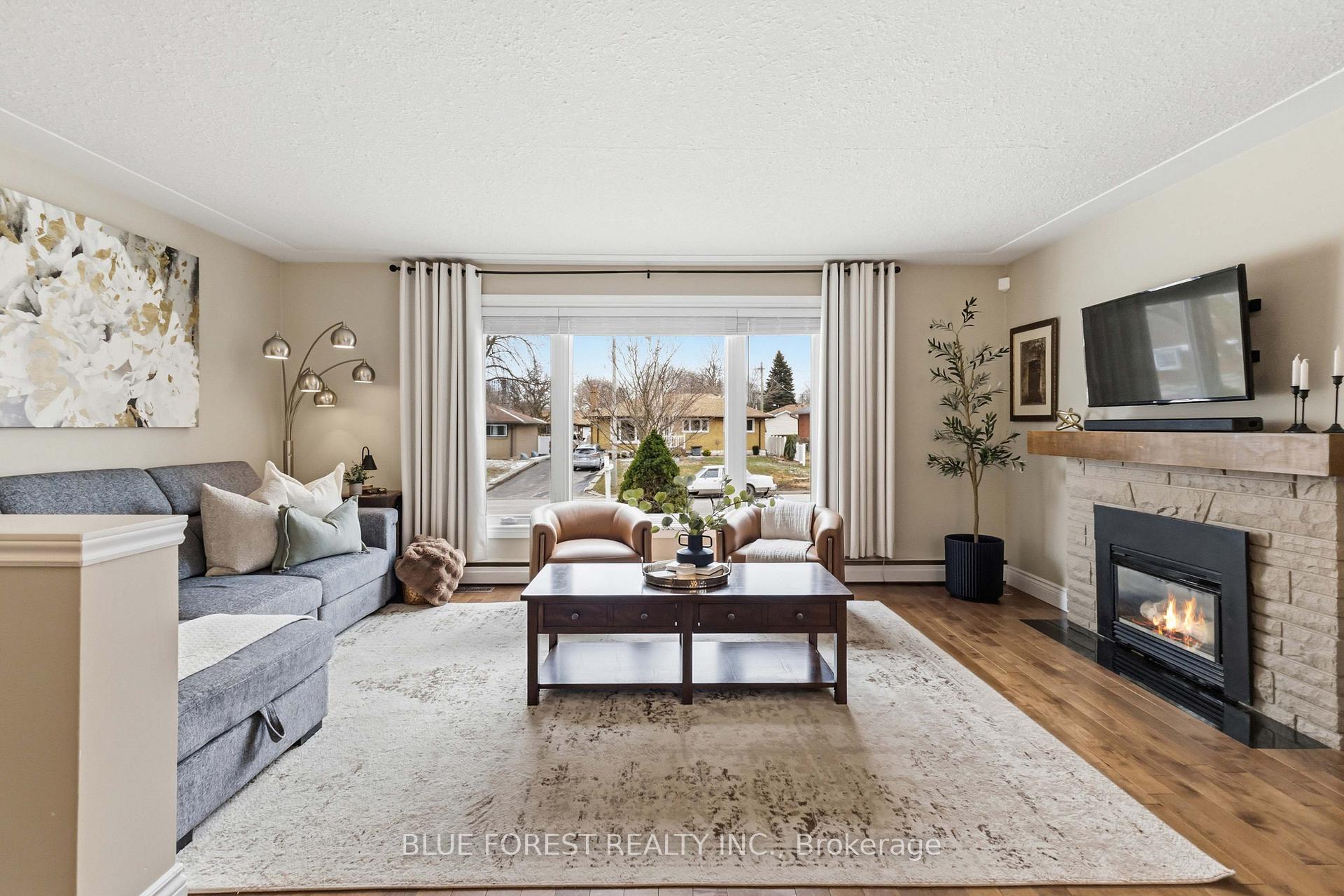 Welcome to 189 King Edward Avenue, a home where the details have been thoughtfully taken care of so you can simply move in and enjoy. Step in from the inviting front porch and into a bright, open living and dining space where new picture windows flood the room with natural light, a cozy natural gas fireplace anchors the space, and rich hardwood floors add warmth and timeless charm. The space flows into the kitchen, refreshed with paint, quartz countertops, and a large under-mount sink-perfect for making family meals. Down the hallway, you'll find three bedrooms, highlighted by the primary bedroom with peaceful backyard views and a closet complete with built-in storage organization. The 4-piece bathroom has fresh paint, earth-tone tiles, and a clean, modern aesthetic. Heading downstairs, discover the ultimate entertaining retreat - fully renovated in 2024, the basement boasts new carpet, a 4-piece bathroom, and a bonus movie theatre room-ideal for movie nights, game days, or relaxing evenings with family and friends. Outside, the backyard is a private oasis with a large composite deck offering ample space for summer gatherings, while an oversized gazebo includes a hidden theatre screen for outdoor movie nights or cheering on your favourite team. Towering hedges surround the fully fenced yard, providing privacy and plenty of room for kids and pets to play. Garden beds are ready for planting and produces fresh strawberries each summer. Practical features continue throughout the property with built-in blinds, central vacuum, and an attached garage offering convenient parking and extra storage. The driveway has also been recently replaced with new concrete, enhancing both durability and curb appeal. With countless updates and thoughtful touches throughout, 189 King Edward Avenue is a meticulously maintained home designed for comfortable living. Come see it for yourself and experience everything it has to offer.