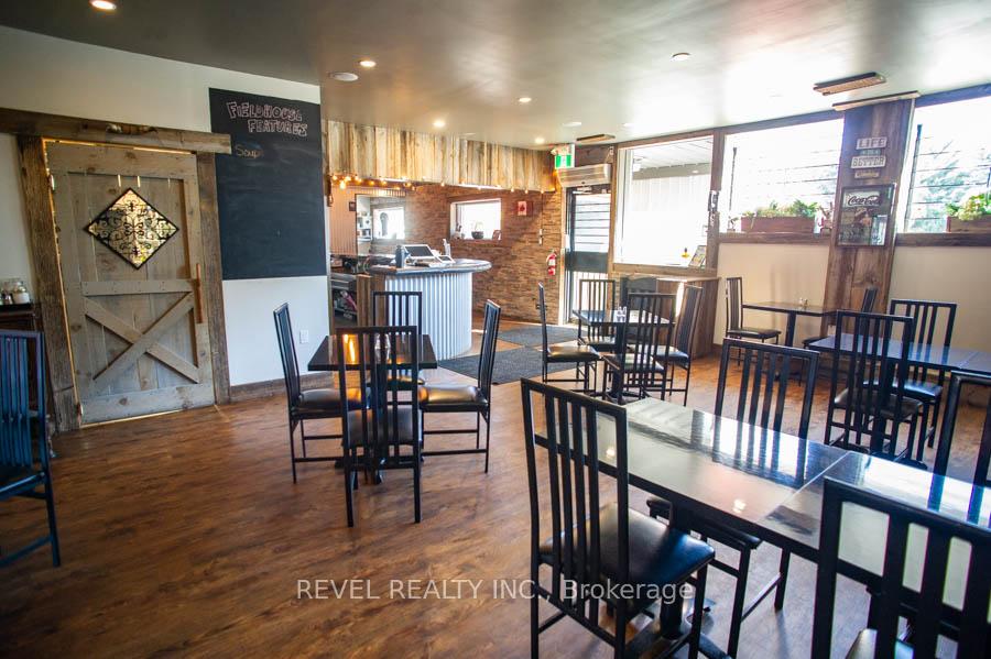 An exceptional opportunity awaits in the heart of Scotland. The Field House Restaurant is a well-established, family-run business known for its quality dining experience, welcoming atmosphere, and strong community presence. Proudly owned and operated by the same family, the restaurant has built a loyal clientele by focusing on fresh ingredients and consistently delivering outstanding customer satisfaction.Step inside to discover a warm and inviting interior, thoughtfully updated with a complete renovation in 2016, including both the dining area and kitchen. A striking stone feature wall anchors the bar area, complemented by a beautiful black walnut counter top-creating a natural gathering space for guests. The main dining room showcases a charming barn board feature wall and offers seating for up to 60 guests, providing both comfort and character.In 2021, an additional dining space was thoughtfully created, ideal for hosting intimate private functions and seamlessly connected to the main dining area. During the warmer months, guests can enjoy the rear patio, which accommodates approximately 20 people, with further potential to expand outdoor seating at the front of the property.The spacious chef's kitchen is designed for efficiency, offering ample room for food preparation and service, along with extensive indoor and outdoor storage. The property also includes two washrooms, all owned equipment, and generous on-site parking, situated on a sizable 80 ft x 165 ft lot.Ideally located just minutes from Brantford, this turnkey offering presents a rare opportunity to own both a thriving business and the property in the growing community of Scotland. With strong existing operations and room for future growth, this is a standout opportunity for entrepreneurs and investors alike.