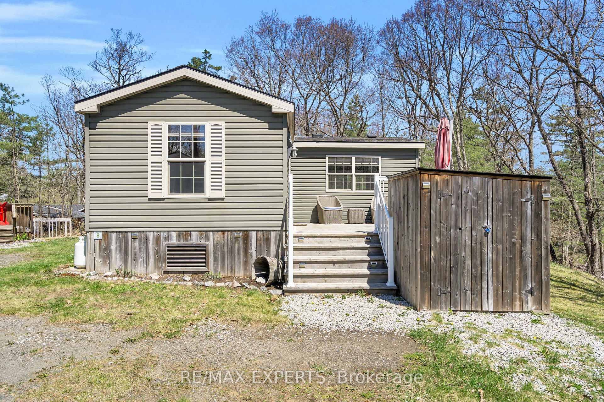 Comfortably sleeping up to 8 guests, fully furnished, and turn key. Welcome to 1336 South Morrison Lake Rd, Unit 8. A charming and ultra-private seasonal getaway nestled beneath acanopy of majestic oak trees in the heart of Lantern Bay Resort in Muskoka. Backing onto the peaceful flow of Morrison Creek, this fully furnished, turn-key cottage retreat offers the perfect escape for relaxing and entertaining, Designed for easy cottage living, the property offers inviting indoor and outdoor spaces to enjoy with family and friends. Unwind around the firepit under the stars or take a short stroll to the water's edge, where the resort comes alive with activity throughout the season. Lantern Bay Resort features an exceptional range of amenities, including a heated saltwaterpool, private sandy beach, boat slips, playgrounds, multi-sport courts, scenic walking trails, and a recreation centre hosting scheduled events such as fireworks, movie nights, family games, and community BBQs. From May through October, all-inclusive seasonal fees ($10,425 approx) covers full access to resort amenities, hydro, water, septic, garbage disposal, and lawn maintenance, creating atruly stress-free Muskoka experience. Whether you're seeking peaceful mornings by the creek or fun-filled weekends with loved ones, this is your opportunity to own a fully furnished slice of Muskoka living.