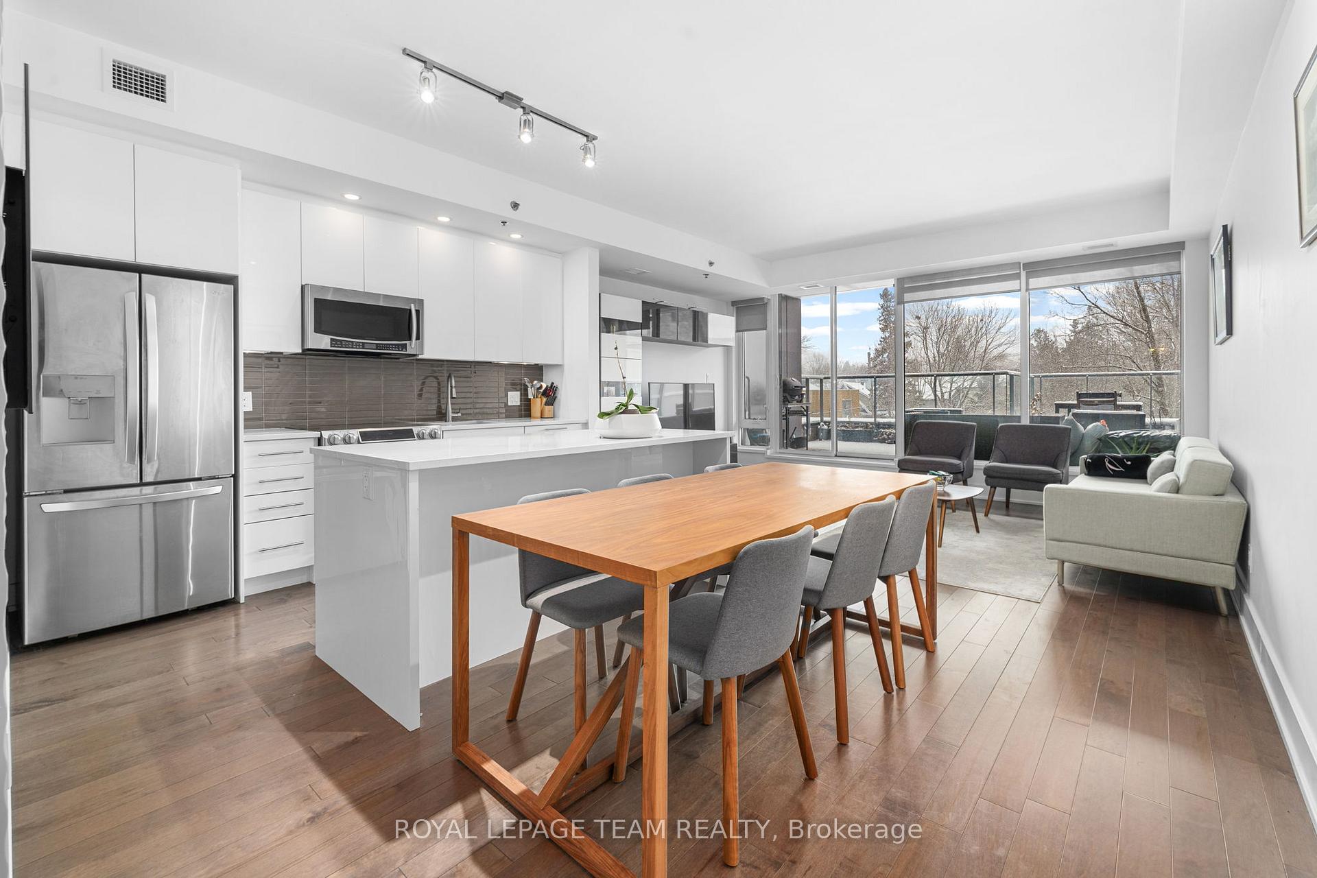 Desirable open concept, upgraded, south facing two bedroom condominium in QWest with two four piece bathrooms. This sun-filled and unique home with hardwood floors features an expansive and private terrace overlooking picturesque Nun's Walk. Upgraded lighting, flooring, an oversized quartz island, a feature wall with an electric fireplace and so much more! Convenient underground parking across from the elevators as well an oversized corner locker on the same level. Enjoy the top-tier building amenities which includes a rooftop terrace with BBQs and hot tub, a private theatre room, fitness room, pet grooming and more! Situated within a few minutes walk to a grocery store, restaurants, shops and services, public transit +++++ Status Certificate on file March 2026. 24 hour irrevocable required on all offers. Parking #82, storage locker #196. Immediate possession. See attachment for clauses to be included on all offers.