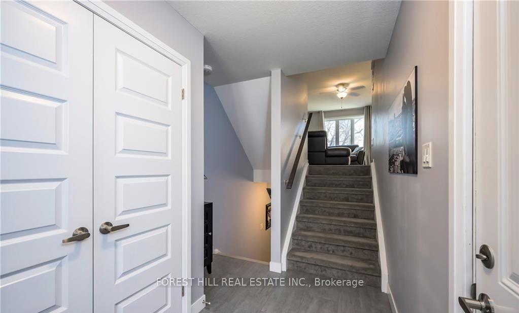 Available July 1st - Bright, Modern Townhome in a Prime, Quiet Location! Step into a spacious and well-appointed two-storey condo townhome nestled in a peaceful, upscale neighbourhood. Perfectly suited for professionals or families, this home offers the ideal balance of comfort, functionality, and convenience.The main level features an airy, open-concept layout designed for both everyday living and entertaining. The kitchen is thoughtfully laid out with a large centre island, ample counter space, and stylish finishes-flowing seamlessly into the living and dining areas. From here, step out onto an oversized private deck, perfect for summer evenings or morning coffee. Upstairs, the primary bedroom is a standout retreat with a vaulted ceiling, walk-in closet, and its own ensuite bathroom. Two additional bedrooms provide flexibility for family, guests, or a home office, complemented by a full second bathroom and the added convenience of upper-level laundry. The finished lower level offers a bright and versatile family room with large windows-ideal for a media space, playroom, or work-from-home setup. Additional lower-level storage ensures you have room for everything. Located just minutes from major highways (401 & 403), shopping, walking trails, and recreational facilities, this home delivers exceptional access while maintaining a quiet, residential feel. Key Features: 3 bedrooms * 3 bathrooms * Open-concept main floor with modern kitchen & island * Private oversized deck * Primary suite with ensuite & walk-in closet * Second-floor laundry * Finished lower-level family room with large windows * Ample storage space * Quiet, well-maintained community * Excellent commuter access.