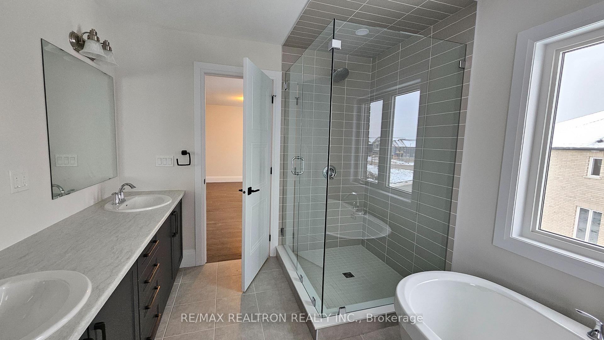 3 Year New Detached house with a double garage and double door entrance. This elegant residence offers 4 bedrooms and 4 washrooms available for lease. The interior features upgraded kitchen cabinets, a quartz countertop, a breakfast bar, and brand-new stainless steel appliances. With a 9-foot ceiling, each bedroom has its own bathroom with an upgraded broadloom. The master bedroom includes a walk-in closet, double sink, and a luxurious 5-piece ensuite, while two additional bedrooms feature 3-piece ensuites. Other highlights include a second-floor laundry, a spacious open living and dining room with a gas fireplace, upgraded flooring, and an entrance from the garage. Step out to the deck and enjoy the scenic view. This property is located in the safe and peaceful West End of Peterborough, a new neighborhood just 10 minutes from Trent University. It offers excellent access to major highways (Hwy 7, Hwy 115, and 407 Toll) **EXTRAS** 4 minutes away from schools, shopping plazas, restaurants, Canadian Tire, LCBO, Sobeys, Metro, Walmart Supercenter, and 12 minutes from Costco. The hospital is also conveniently located just 8 minutes away.