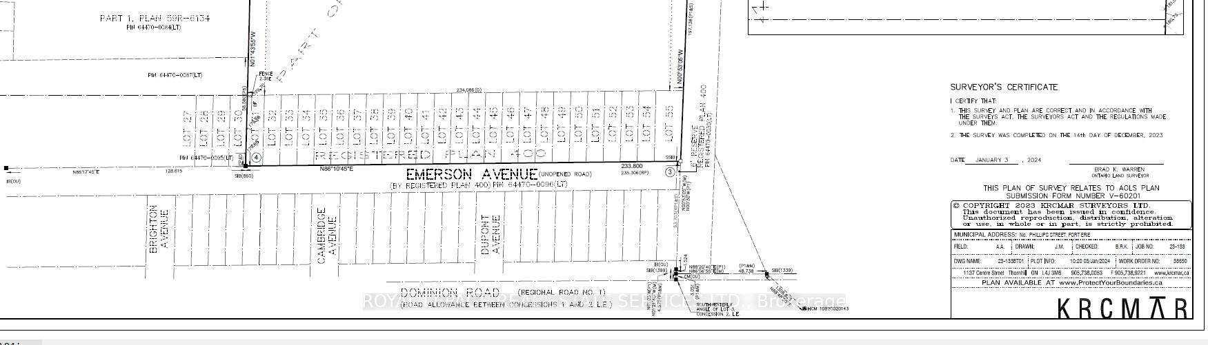 Two Parcel of Vacant Land, Walking Distance to the Crescent Beach, Conceptual plan showing 24 single lots(previously registred) on Emerson & Townhouses on the Dominion Road site, Buyer to do their own due diligence, the lots on Emerson are on the survey and legal description, the area is walking distance to the beach, services are available nearby to be extended to the property, Property is 6km from the Peace Bridge and entry into the United States,and only 4km from Queen Elizabeth Way. The surrounding community is primarily residential, with neighbourhoodbusinesses and some institutional uses (schools, sports centres). The site has high visibility from Dominion Road, waterfront areas. 5-minute drive from Walmart, Starbucks, Sobeys, LCBO. Fort Erie is projecting growth to 48,050 residents and 18,430 jobs by theyear 2051, needing to accommodate 15,230 new residents.