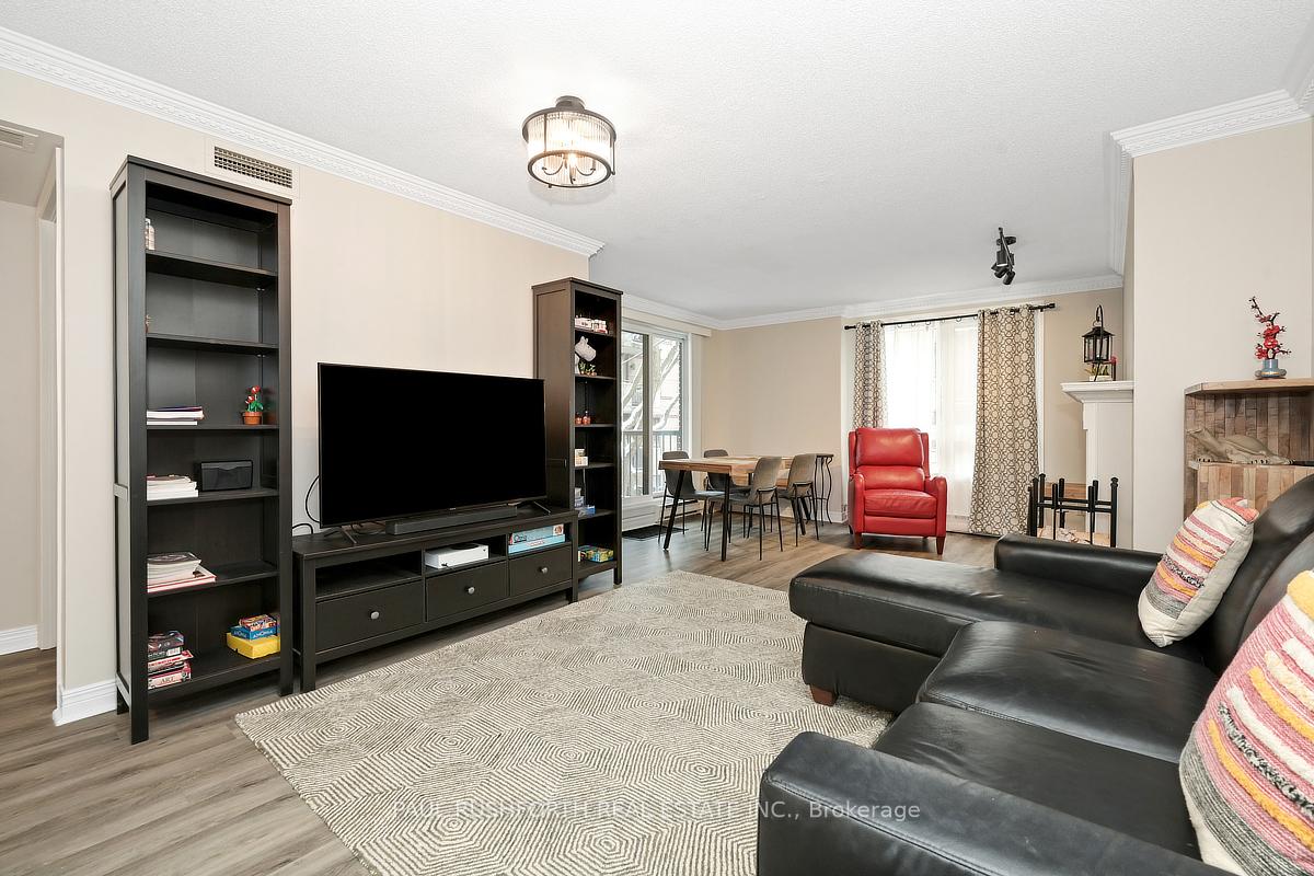 Sunlight, river paths, and the quiet crackle of a wood-burning fireplace; this 3-bedroom, 2- full bathroom Ottawa condo near the Rideau River offers a rare blend of comfort and walkable city living. Just steps from the Rideau river, a pedestrian bridge to Sandy Hill, and surrounded by parks, cycling paths, and transit, this centrally located apartment places some of Ottawa's most scenic outdoor spaces and Ottawa University right outside your door. Inside, the open-concept living and dining area creates an inviting hub for everyday living and entertaining. A wood-burning fireplace adds warmth and character, while large windows and balcony access draw in natural light. The recently painted interior and newly installed engineered hardwood flooring provide a fresh, modern backdrop ready for your personal style. The spacious primary bedroom features a walk-in closet, full ensuite bathroom, and direct access to the balcony - an ideal retreat for quiet mornings or evening relaxation. Two additional bedrooms offer flexibility for family, guests, or a home office, complemented by a second full bathroom. The eat-in kitchen offers generous counter space and awaits your custom touch to make it truly your own. Everyday convenience continues with in-unit laundry, underground parking, and an ample dedicated storage locker. Residents also enjoy access to a rooftop terrace and BBQ area, perfect for summer gatherings with skyline views. With the Rideau River pathways, nearby parks, and vibrant neighbourhood amenities within walking distance, this condo delivers an easy urban lifestyle in one of Ottawa's most naturally beautiful settings. Pets are allowed, but must be carried in arms through the common areas (please refer to condo rules and regulations). Parking spot (owned) is #4 on level B, Large 11'x4', storage locker #8 in Door 7-24 is assigned, in the underground garage. Newer furnace, HWT, and duct cleaning (2022).