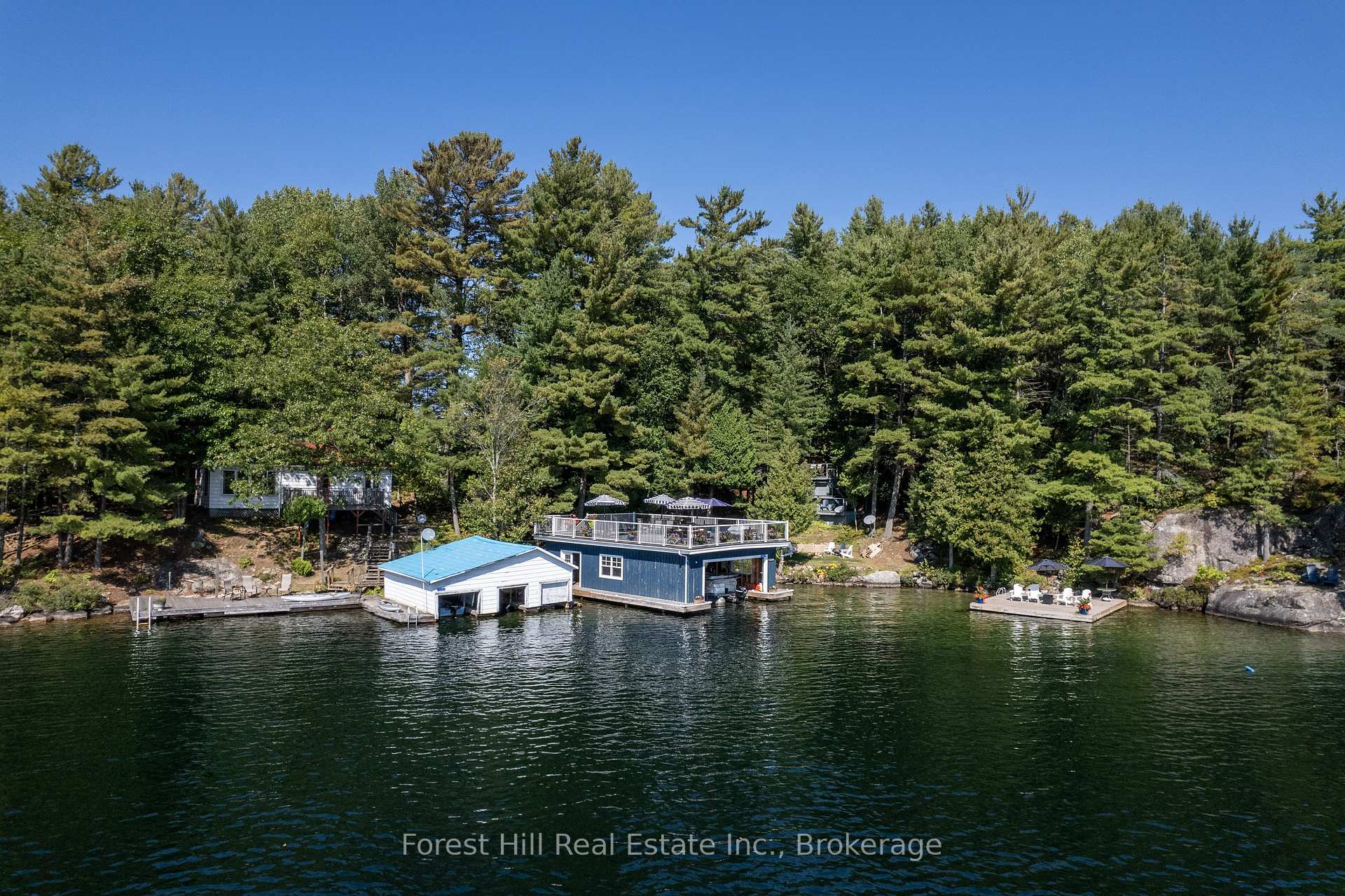 Fabulous family compound on crystal clear Skeleton Lake. This Clifton Island location is mere minutes to the marina. Two fully equipped principle cottages, a third guest cottage plus bunkie or currently being used as an office. There are two boathouses, one newer with a Grande entertainment deck, fun bar games area inside, plus one large oversized slip. The other boat house could be refurbished or eliminated. The 300 feet of private shoreline provides both deeper water and a gorgeous hard packed sand beach area with separate lounging swim dock. Perfect south-west sun exposure. There is just so much here! Grandfathered buildings, newer septic system. A most rare opportunity indeed on Muskoka's Finest Lake!