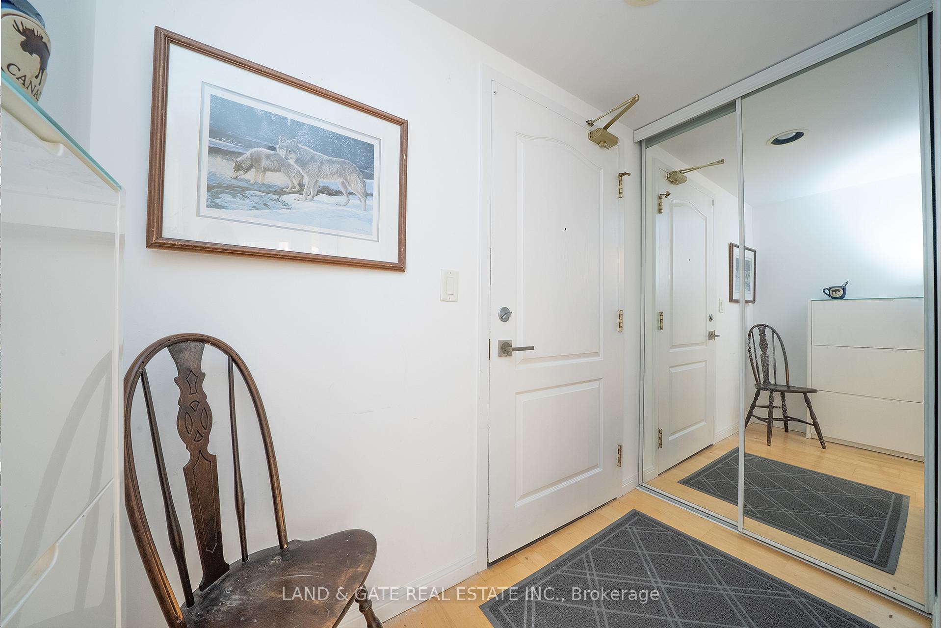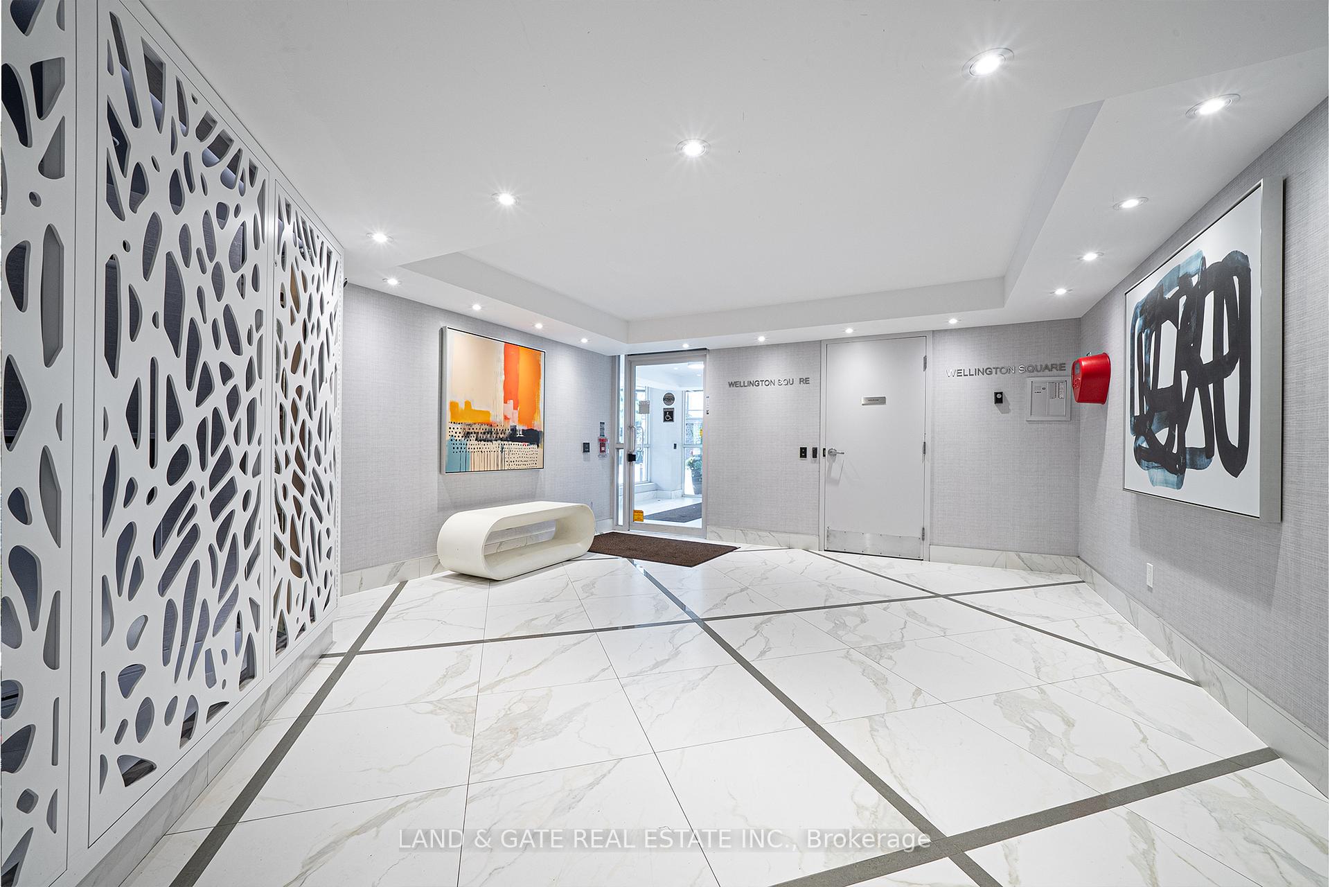 Amazing unit in Wellington Square, Toronto! Spacious 1+1 bedroom condo offering 742 sq ft (as per MPAC) with many updates, located in the heart of King West. This sought-after location is steps from Trinity Bellwoods Park, Stanley Park, Garrison Crossing Walk/Cycling Bridge, Queen West and Liberty Village, & King St Streetcar at the corner. Enjoy easy access to boutiques, cafés, shopping, transit and nearby dog parks. The unit features an updated kitchen with quartz counters, new cabinet doors, a convenient breakfast bar, and lovely stainless steel appliances. The updated main bath offers a modern shower stall, vanity and sinks. The den includes a custom-built hidden bed with remote control lowering, built-in cabinetry and desk (8k value done in 2024 - cabinet is designed with a desk, and when it folds up with the remote, you don't have to clear the desk first. Please see virtual tour to see it in action). The primary bedroom provides a semi-ensuite bath, while the living and dining areas feature laminate flooring and a walkout to a private balcony. Building amenities include a gym, party/meeting room, rooftop deck, visitor parking, and this unit comes with one underground parking space and a locker. Enjoy the rooftop deck on summer evenings and take in the beautiful Toronto skyline. This is a wonderful community setting - simply move in and enjoy everything this vibrant area has to offer.