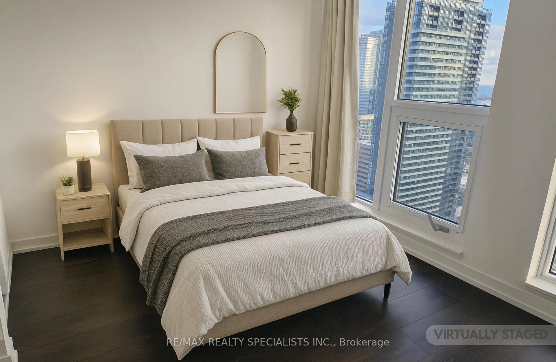 Inspired by the neighbourhood's turn-of-the-century buildings, 55 Mercer's bold design makes quite the statement. Luxurious 1-bedroom plus den unit with 2 washrooms featuring HUGE floor to ceiling windows. The den offers ample space for a second bedroom or office. South facing with unobstructed views of CN Tower, Lake Ontario, Rogers Centre and the city skyline. Enjoy access to the indoor pool, 24-hour indoor and outdoor fitness centres, outdoor basketball court, entertainment room and shared co-working spaces. Situated in the heart of Toronto's Entertainment District with a short walk to the subway, theatres, fine dining restaurants and cafes.