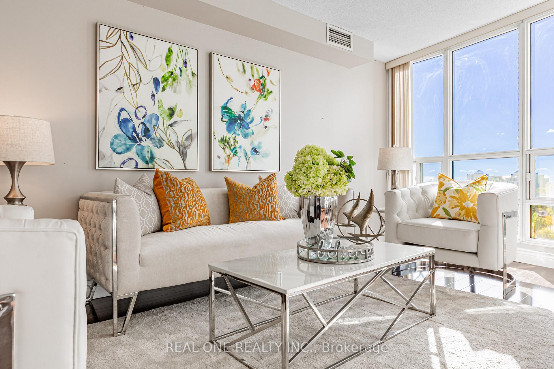 Stunning 2-bedroom, 2-bath corner suite offers 1037 sq. ft. of bright, stylish living space with beautiful southwest views, filled with lots of natural light by day and romantic city twinkly lights by night. Perfect for downsizers, small families, or first-time home buyers seeking an elegant yet affordable home, the suite features a functional layout with two independent temperature controls for maximum comfort, a modern kitchen with quartz countertops, and a breakfast area with unobstructed views. The spacious living room opens to a large balcony ideally for relaxing or entertaining. The lady host will appreciate the large walk-in closet in the primary room. The unique suite is situated in a well-managed, recently updated building, within walking distance to the TTC subway, restaurants, shops, the North York Civic Centre, Loblaws (later to be T&T Supermarket), and the public library. More importantly it is located in the highly sought-after Earl Haig Secondary and McKee Public School district. ** one parking + one locker + Condo Fees cover all except Hydro **.