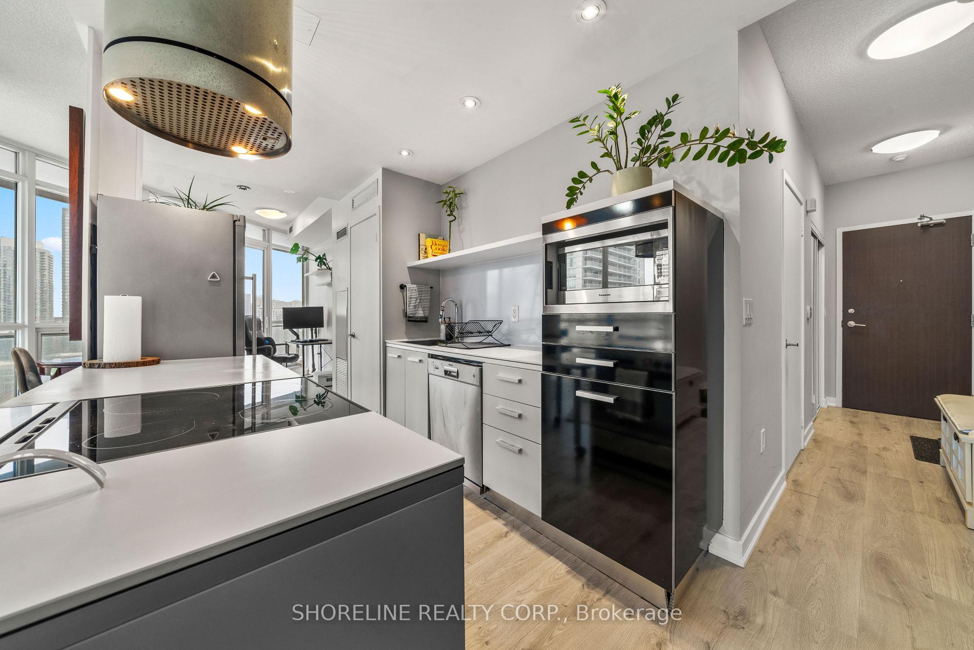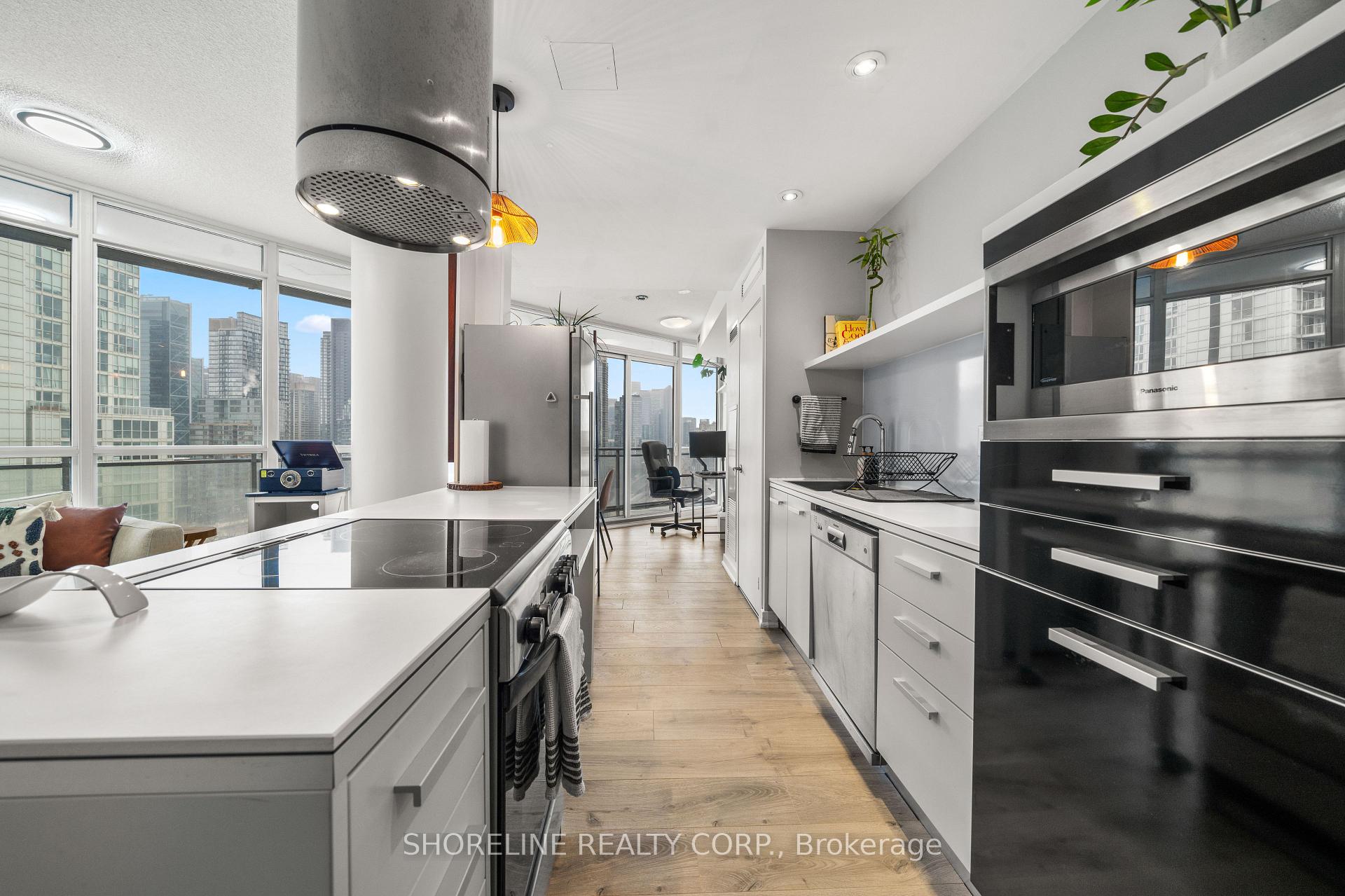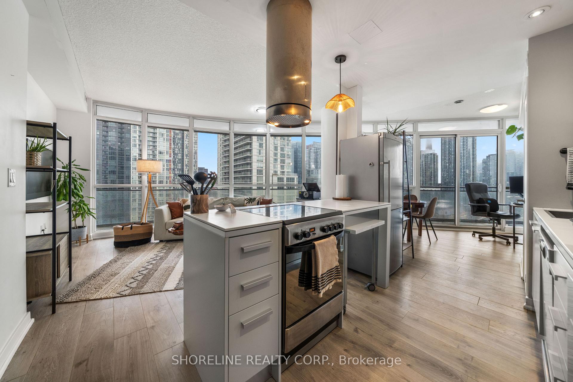 Welcome to unit 2008 at 38 Dan Leckie Way, a one-bedroom residence in The Panorama Condos that offers a thoughtful layout and expansive outdoor space. Available for lease starting January 15, 2026. The suite itself is efficiently planned, with one bedroom and a cleverly designed four-piece bathroom that connects seamlessly to both the foyer and the bedroom. The bathroom layout includes a separate water closet with its own sink and toilet, while the main bathing area features a sink and shower. It's a practical setup that allows the space to function smoothly for daily life, whether you're hosting a guest or just moving through your morning routine. The living space opens naturally onto one of the unit's standout features: a huge wrap around balcony with North West exposure that stretches toward Eastern views. From here, you can take in CN Tower views and Lake Ontario in the distance. Inside, the unit includes a stacked washer dryer. The unit can be leased furnished or unfurnished, offering flexibility depending on your plans. There is also an option to purchase the existing furniture directly from the landlord, subject to negotiation. Monthly rent includes water and heating. The tenant is responsible for hydro and wifi. The building sits less than a ten minute walk to the Billy Bishop Airport Ferry Terminal and a fifteen minute walk takes you to the Rogers Centre. Nearby, there are everyday essentials like Shoppers Drug Mart, the LCBO, and Loblaws. The surrounding area offers plenty of greenspace, with nearby parks and easy access to the waterfront trail.