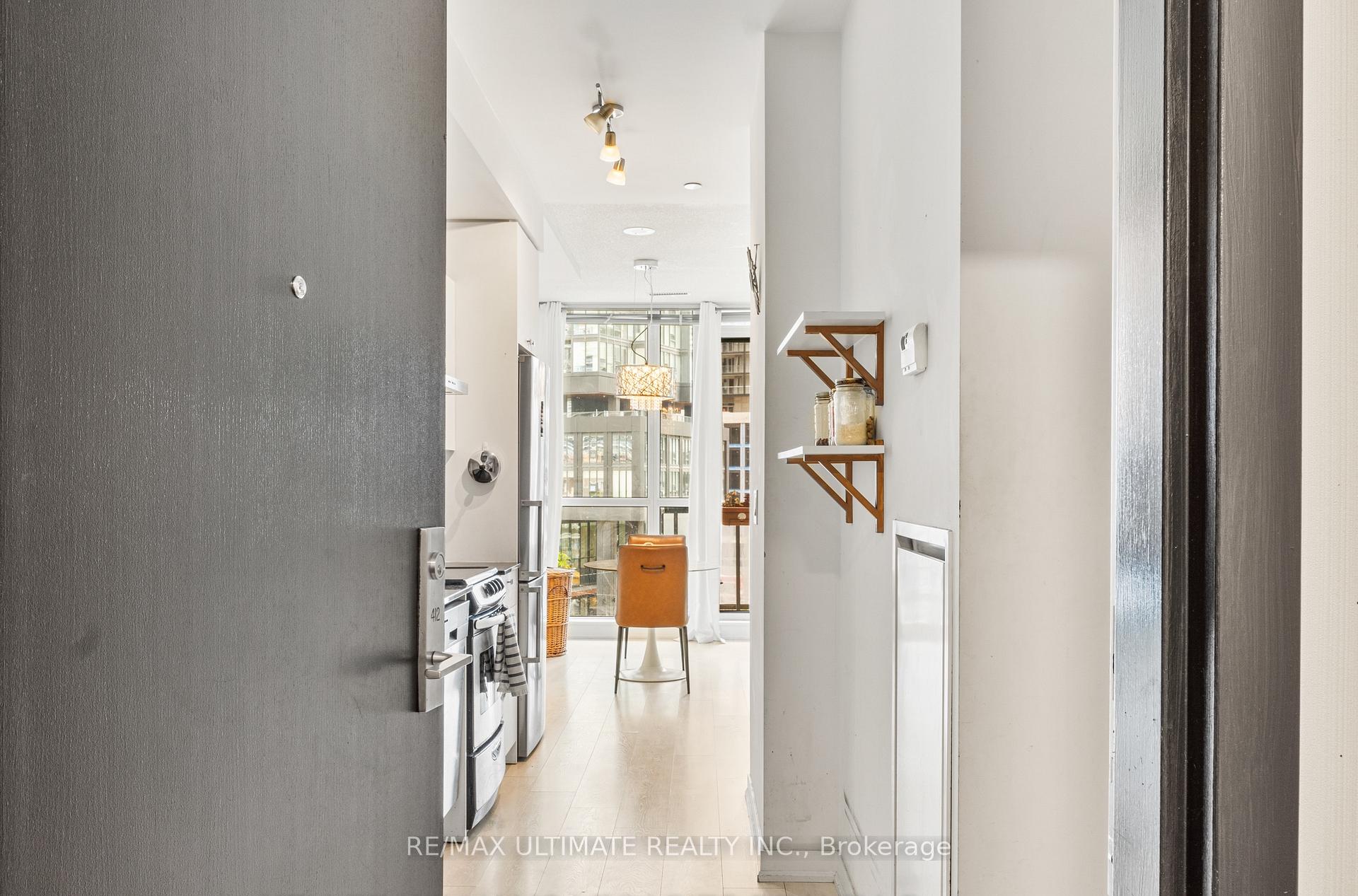 Experience refined urban living in this stunning one-bedroom suite, where 9-foot ceilings and sleek laminate flooring create an airy, modern atmosphere. The heart of the home is a sophisticated galley kitchen equipped with premium stainless steel appliances, elegant granite countertops, and a classic subway tile backsplash. This space flows seamlessly into an open-concept living and dining area, framed by floor-to-ceiling windows that flood the unit with natural light. From here, step out onto your private balcony to enjoy a rare, unobstructed view of the park-the perfect backdrop for your morning coffee. The bedroom serves as a quiet retreat featuring a spacious double closet, while the convenience of an ensuite laundry and a dedicated storage locker add to the effortless lifestyle.Located in the vibrant heart of Liberty Village, you are just a short stroll from upscale dining, trendy boutiques, and local markets, with the King Streetcar right at your doorstep for easy commuting. Residents enjoy access to world-class building amenities, including a 24-hour concierge, a fully equipped gym and yoga studio, a steam room, and a luxurious outdoor pool and hot tub. For entertaining, the building offers guest suites, a party room, and a scenic outdoor patio. This turnkey rental includes a full suite of high-end appliances-a GE dishwasher, flat-top stove, and stacked washer/dryer, a Cyclone hood vent, and an LG fridge-with heat and water conveniently included in the rent. The unit will be freshly painted before occupancy.