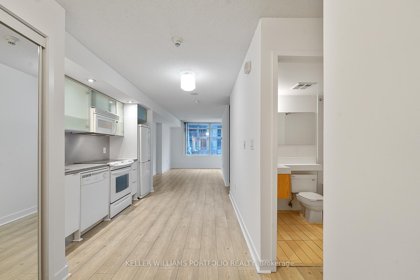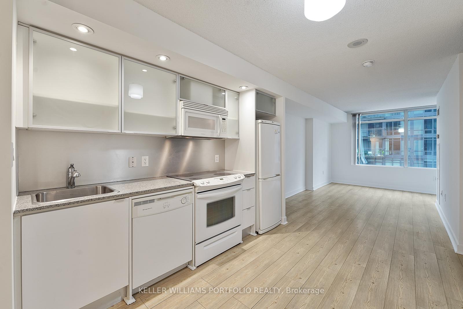 1+1 bedroom unit Located At Front w/ functional open-concept layout and floor to ceiling windows. Large bedroom w/ double closet. Separate den ideal for a home office. Modern kitchen. Balcony. Building amenities includes concierge, indoor lap pool, jacuzzi, sauna, gym, party room, outdoor BBQ terrace, theatre, karaoke room, guest suites, outdoor climbing wall. Close by 8-acre park, Loblaws, Sobeys, easy access to TTC, GO Transit, and the Easy Access To Gardiner. Walking distance to CN Tower, Rogers Centre, Financial district, Entertainment District, King West, Queen West, the Waterfront, Chinatown, And So Much More!