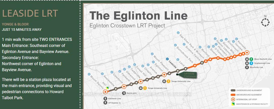 Experience elevated living at Leaside Common, a brand-new luxury residence in the heart of Leaside. This stunning 2-bedroom, 2-bath suite showcases refined modern design and thoughtful craftsmanship throughout. Enjoy smooth concrete ceilings, a designer Scavolini kitchen with Porter & Charles appliances, stone countertops and backsplash, a gas cooktop and panelled refrigerator. A functional island that's perfect for dining or entertaining. Warm light hardwood flooring, under-cabinet lighting, and ample storage complete the space-combining style, comfort, and practicality in one of Toronto's most sought-after neighbourhoods. Steps to Eglinton Crosstown LRT set to open soon. convenience surrounded by tree-lined streets, top schools, sports clubs, boutiques, cafes, and restaurants. Retreat to your ensuite bath with a frameless glass shower, rain shower head, porcelain tile, and quartz vanity. Enjoy outdoor living on your private balcony with water, gas and electrical connections.Smart-home features include keyless entry, a mobile resident app, and individually controlled HVAC with fresh-air ventilation. Building amenities include a 24-hour concierge, fitness studio, co-working lounge, outdoor lounge with BBQs, pet wash, and parcel management system. A perfect blend of sophistication, comfort, and community, Leaside living at its finest.