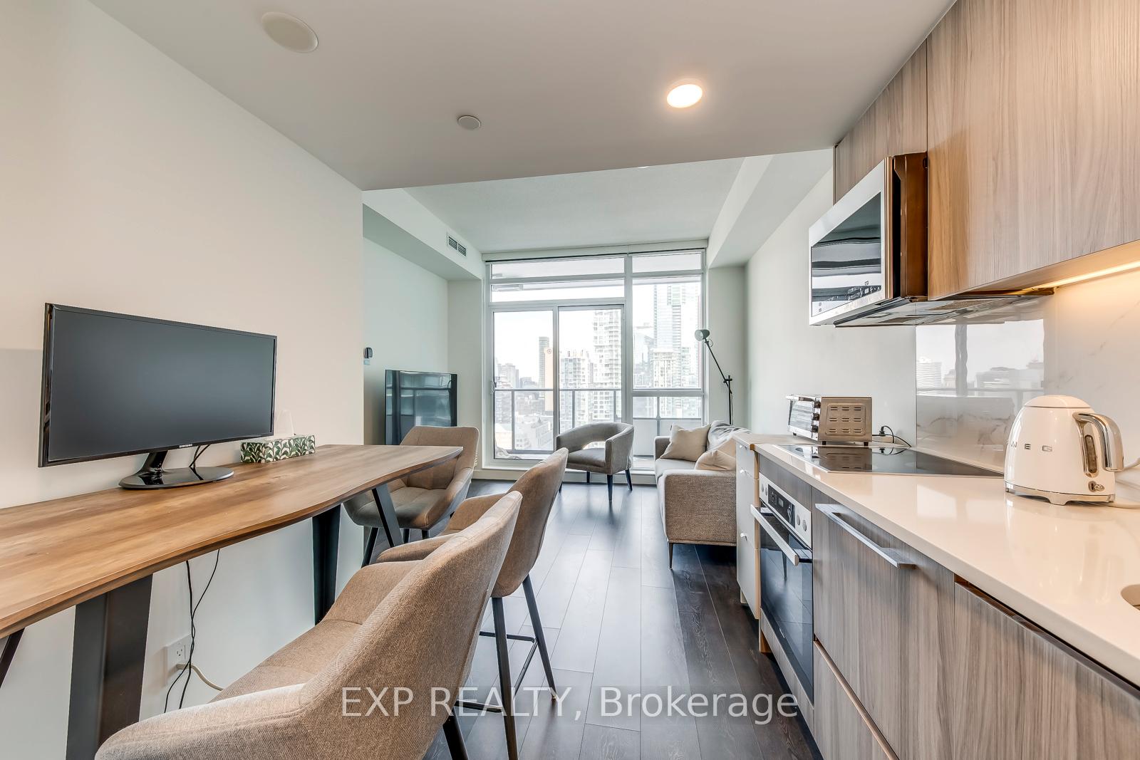 Welcome to Central Condos, where urban living is redefined. Built by the renowned Concord in the heart of Toronto's Entertainment District and Tech Hub - this home is the perfect blend of style and functionality in this bright and thoughtfully designed one-bedroom condo. Featuring high-end built-in appliances, built-in closet organizers, and an unobstructed east-facing view, it combines practicality with modern elegance. With a Walk Score of 100, Transit Score of 100, and Bike Score of 98, everything you need is within easy reach. Two major grocery stores, No Frills and Independent City Market, GoodLife Fitness, and a Toronto Bike Share station are all within 300 meters. Osgoode Station is less than a 10-minute walk, or hop on the King, Queen, or Spadina streetcar lines to connect to the rest of the city. Residents enjoy exceptional amenities, including a state-of-the-art cardio and weight room with smart-mirror virtual fitness, a high-tech meeting area with smart glass-equipped private rooms, a campus-style work lounge with private booths and tabletop charging, and an indoor/outdoor pool with private movie screenings. Everyday conveniences are taken to the next level with refrigerated grocery lockers for fresh groceries, smart parcel lockers for secure deliveries, EV charging stations, and visitor parking. Don't miss this opportunity to experience the ultimate in Toronto urban living.*Furniture inclusion can be negotiated*