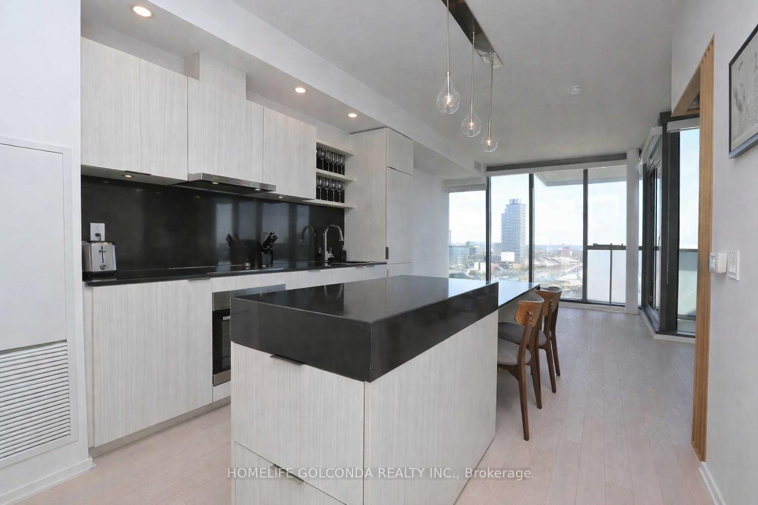 Welcome To Monde Condos. Proudly Built By Great Gulf Complete With Internationally Recognized Architecture And Design By Moshe Safdie. This Impeccably Maintained East-Facing 1 Bed + Den Offers 671 Sqft + 59 Sqft Balcony, 9' Ceilings, Floor-To-Ceiling Windows, Hardwood Floors Throughout, And Breathtaking Unobstructed Views Of Lake Ontario And The City Skyline. The Upgraded Contemporary Kitchen Features Integrated Appliances And A Dropped Dining Table With Custom White Oak Woodwork. Enjoy Resort-Style Amenities Including A Saltwater Infinity Pool, Rooftop Patio, Fitness Centre, Yoga Studio, Saunas, Guest Suites, 24-Hour Concierge, And Visitor Parking. Steps To The Waterfront Promenade, Port Lands, New LRT And Future Ontario Line, Plus Walking Distance To Groceries And Countless Restaurants - Offering A Truly Sophisticated, Turnkey Urban Lifestyle. High-Speed Internet Included.