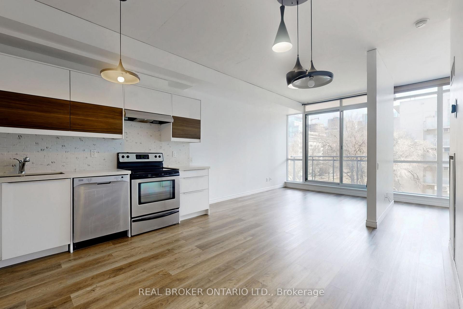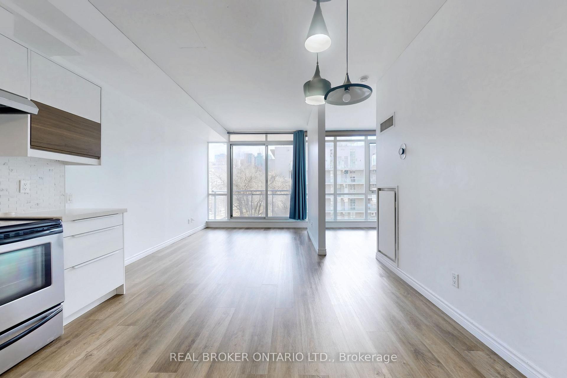 Blend style and convenience with this amazing space that features exposed concert ceilings, recently renovated open concept kitchen ,living, and dining, with floor to ceiling windows that give tons of natural light. Just steps from the lively energy of King St. West. Designed with the downtown professional in mind, this unit also features updated luxury vinyl flooring, bedroom is not enclosed in this unit. Enjoy unbeatable proximity to some of Torontos best dining, Stackt Market, The Well, Farm Boy Grocery, Trinity Bellwoods Park, and easy access to the TTC and Gardiner Expressway.**EXTRAS** Fridge, Stove, Dishwasher, Range Hood, Washer, Dryer, All Electrical Light Fixtures, Bedroom mobilize blinds, key fobs