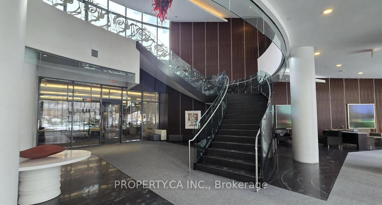 Luxurious Gibson Square by Menkes at 5162 Yonge St - a bright, east-facing 691 sq ft 1-bedroom + den (den easily converts to a 2nd bedroom) featuring a functional layout, modern kitchen with built-in appliances, and a large private terrace to enjoy fresh outdoor air; this unit offers extra privacy with a corridor separating it from the neighboring suite. Building amenities include an indoor pool, party/meeting rooms, theatre, card room, and 24-hour concierge/security, and the location provides direct subway access and a short walk to Empress, shops, library, Loblaws, cinemas, restaurants and more.