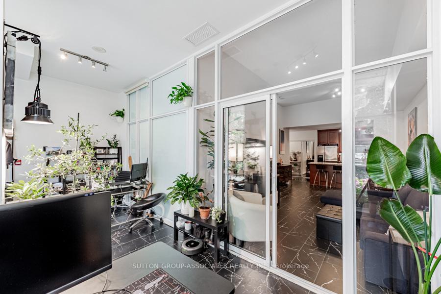 Live/work street front condominium facing Fleet Street. This unit offers easy access and excellent visibility for a business. It is dual-zoned, making it ideal for a small business or office, or as a lovely 1+1 condo unit. Welcome to West Harbour City! This rarely available south-facing unit is a charming and well-appointed 1-bedroom plus office space condo that truly feels like home. The spectacular floor plan boasts a bright and spacious open-concept layout with soaring 11-foot ceilings and two separate walk-outs, one to Fleet Street and the other to the condo building. The functional kitchen is equipped with a built-in breakfast bar and stainless steel appliances, while the front office is generously sized. The building offers excellent amenities, including an indoor pool, fitness center, sauna, rooftop patio, and more! Ideally situated in a highly desirable neighborhood in the heart of downtown Toronto, this unit is 814 sq. ft. as per the floor plan. Extras include being just steps away from the lake, Farm Boy, Loblaws, TTC, schools, shops, restaurants, parks, Harbourfront, and quick access to the highway. The unit features brand new Italian porcelain tile installed throughout recently.