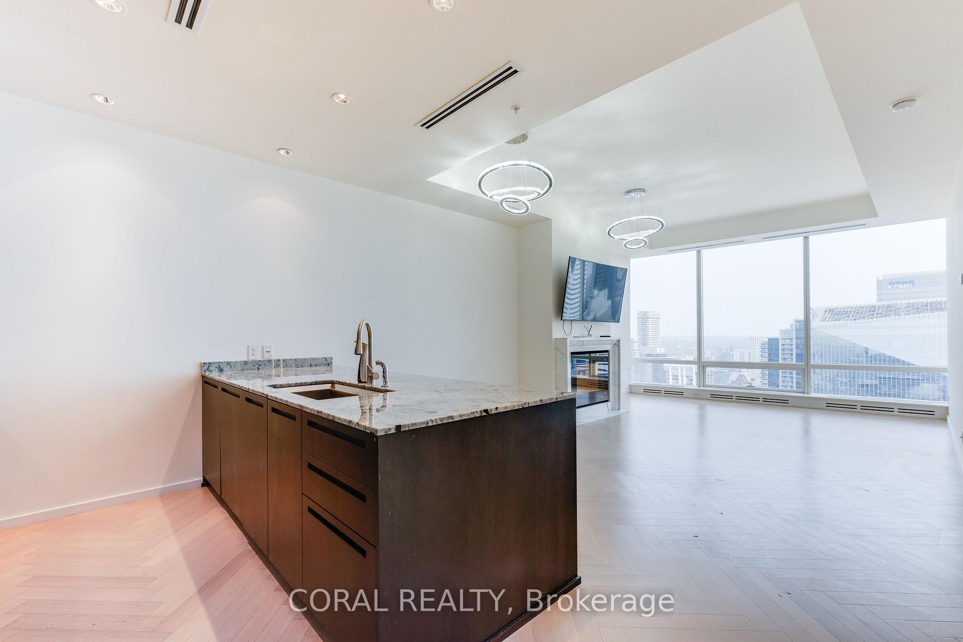 Welcome to the prestigious Shangri-La Hotel and Residences, where luxury meets exclusivity on the 56th floor of a renowned building that happens to be rent-controlled. This elegant unit is part of the Private Estates Collection, offering unparalleled privacy with separate dedicated elevators. Spanning nearly 900 sqft, this spacious 1-bedroom suite features 9 ft ceilings and floor-to-ceiling windows that flood the space with natural light.The residence boasts a fully tiled bathroom equipped with a TV-integrated mirror and a custom walk-in closet for optimal storage. Culinary enthusiasts will appreciate the top-of-the-line Miele appliances and a Sub-Zero refrigerator. Enjoy cozy evenings by the fireplace, or unwind with the included wall-mounted TV. Beyond your private sanctuary, indulge in world-class amenities and dining options that Toronto has to offer, all just an elevator ride away. Amenities include access to the Miraj Hammam Spa, health club, room service, valet parking service, 24h concierge, and doorman just to name a few! This unit also includes one dedicated parking spot for your convenience. The unit will be professionally cleaned.
