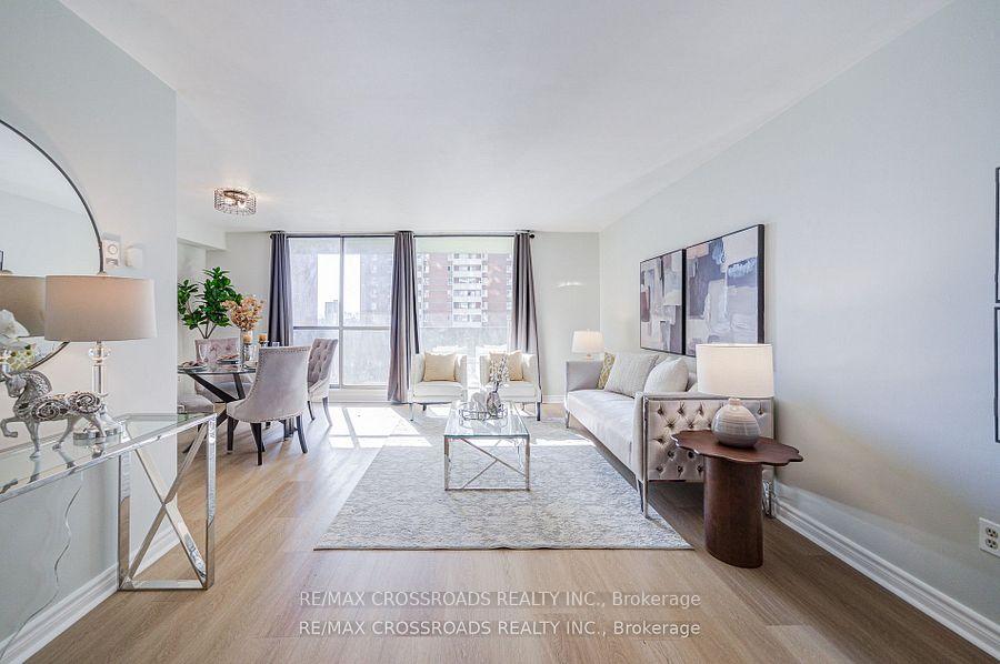 ** Renovated, clean, updated and move in condition** Brand New Fridge, Stove, Rangehood ** COMPLETELY RENOVATED MODERN KITCHEN AND WASHROOM, New flooring in living, dining, bedroom** Freshly painted ** shows well ** Great Amenities in the complex included **Parking and locker available on rental basis ** Walk to subway, all amenities, parks, shopping, schools**24 hours security.