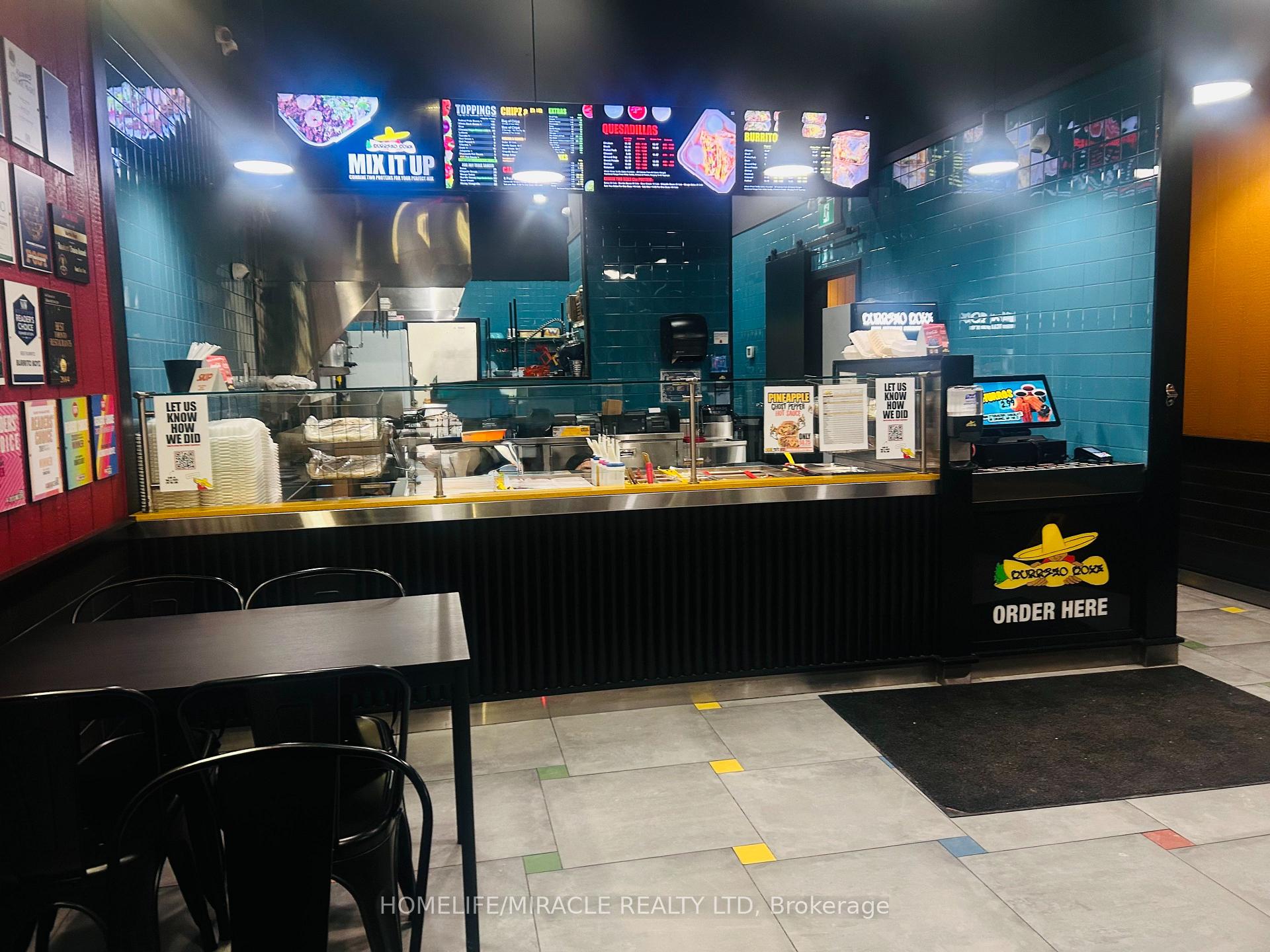 Discover an exceptional opportunity to own a high-traffic Burrito Boyz franchise in one of Ajax's most active commercial pockets. Perfectly placed at Rossland Rd E & Salem Rd N, this location is surrounded by nonstop activity from nearby childcare centres, corporate offices, Amazon Fulfillment Centre staff, the Ajax Fire Department, schools, and dense residential communities. The beautifully updated 1,279 sq. ft. unit offers strong curb appeal, excellent visibility, and consistent daily foot traffic-ideal for a thriving quick-service restaurant. With affordable rent ($3,943.58 + $2,250.48 TMI, including pylon signage and water), this setup delivers strong value in a premium corridor. A steady flow of loyal customers, strong online presence, and established delivery partnerships make operations smooth and profitable from day one. Surrounded by major brands and a growing population, this location is perfectly positioned for continued growth-plus additional upside from catering, local marketing, and community outreach. A modern, well-run franchise in a booming area... buyers looking for a ready-to-operate, income-producing business will love this one.
