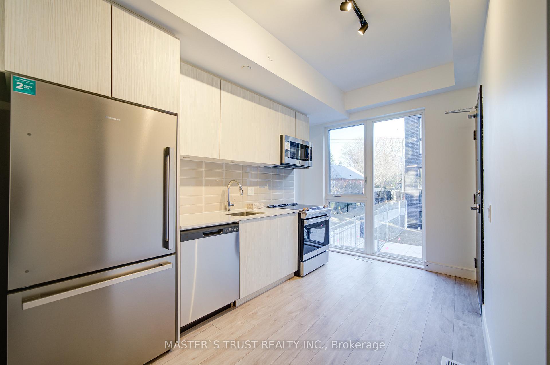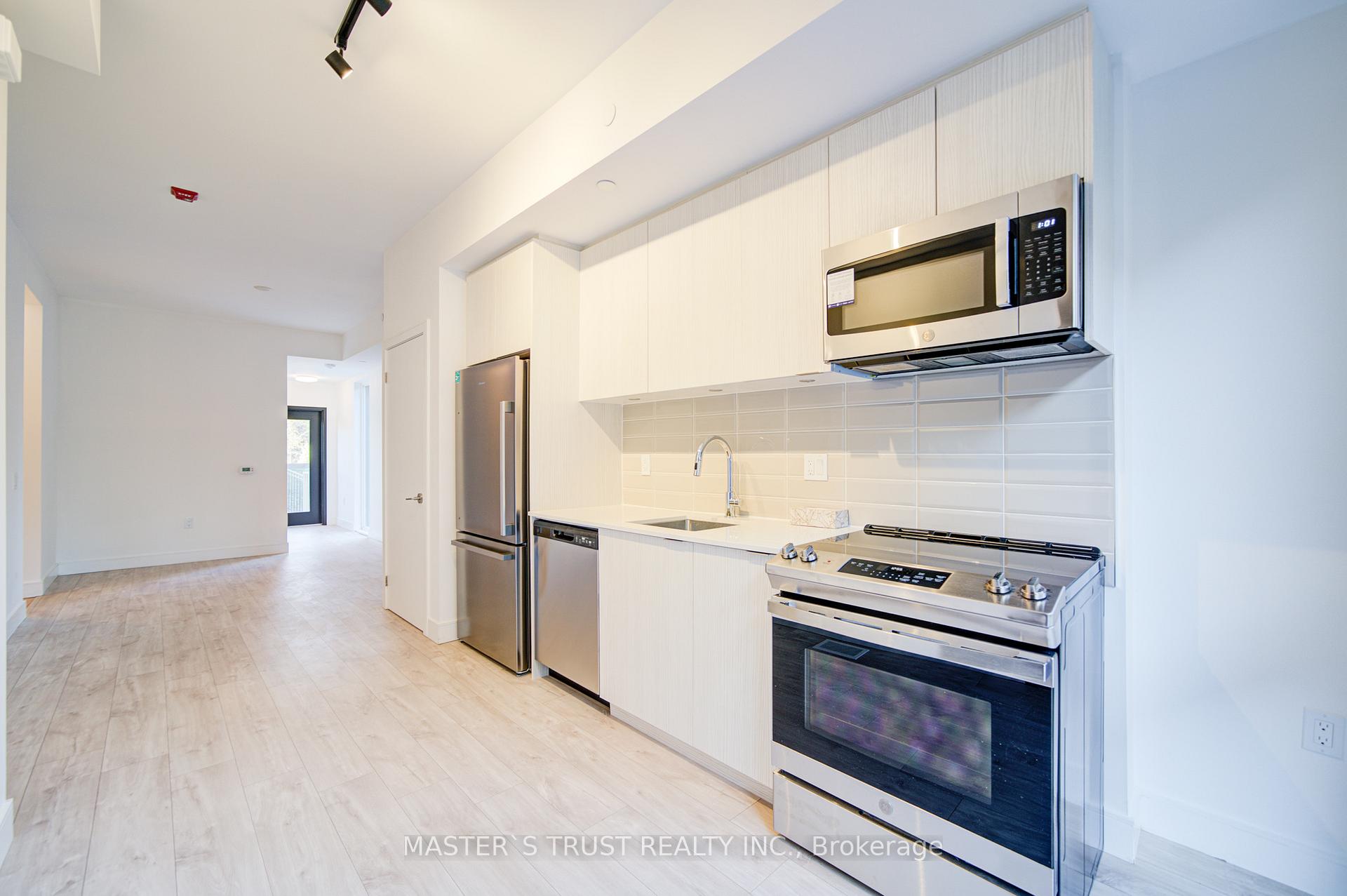 Welcome to this beautiful, sun-filled End-unit one-year new condo townhome, features 3 bedrooms and 2 full bathrooms, spanning the ground and lower levels, with every detail designed to impress. One underground parking included for your convienence. Boasting 9 ft ceilings and elegant hardwood flooring throughout, this home offers a perfect blend of style and functionality. Natural light pours in through floor-to-ceiling windows in the front of the house and the ground-level bedroom. contemporary kitchen features quartz countertops, sleek stainless steel appliances. Convenient ensuite laundry adds to the comfort of this exceptional home. Minutes to Public Transit Such as Subway Station and buses, Fresco Grocery Store, Restaurants, beaches, schools, and community center, this property provides the ideal blend of urban convenience and serene living. **EXTRAS** Stainless Steel Stove, Built-in Dishwasher, Refrigerator, Built-in Microwave and Exhaust, Stacked Washer & Dryer. One Parking Included, Hot Water Tank Rental included.