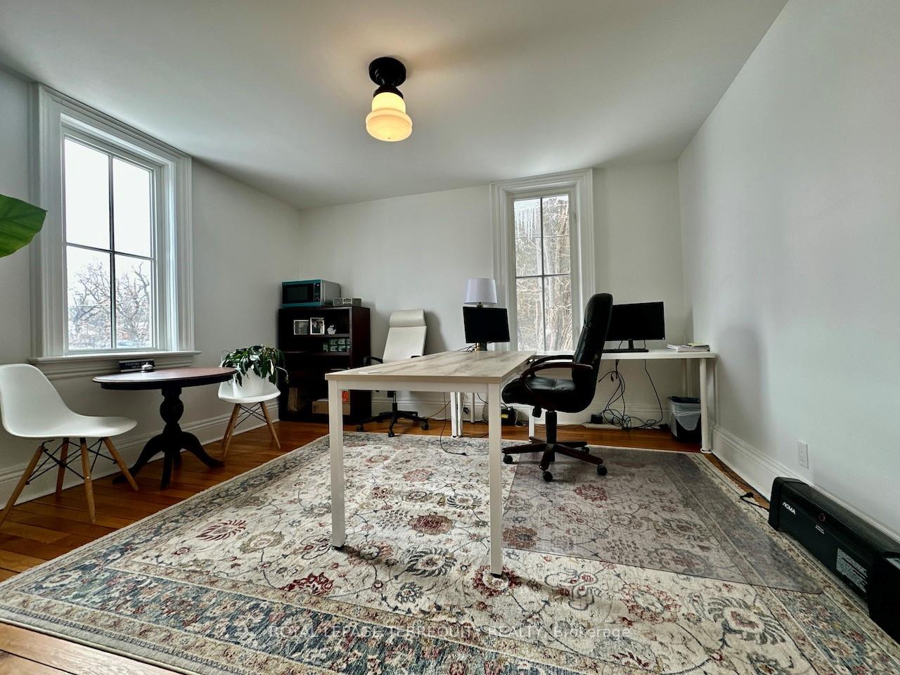 Newly renovated high exposure historic landmark building with professional tenant mix situated just east of York Durham Line in the quaint hamlet of Green River immediately on Highway 7 (formerly known as the Saunders Book Store). Conveniently located just east of Markham along the north west border of Rural Pickering. Ideally suited for office or similar use. See floor layout plan showing main and upper floors. W5 has 2 large windows and faces Highway 7. There are three common washrooms. Each unit comes with its own designated parking(s) Utilities (gas/ water/ hydro) are included. The interior of the building impresses with period correct materials throughout. Finishes include mosaic tilework, hardwood, high baseboards, crown mouldings, ornate trimwork, coffered/ tin ceilings, oversized vertical sliding slash styled windows that crank open, exposed wood, brickwork, and more. All office are sizeable, bright, and airy with ample separation from neighbouring suites. Office furniture can form part of the lease subject to availability.